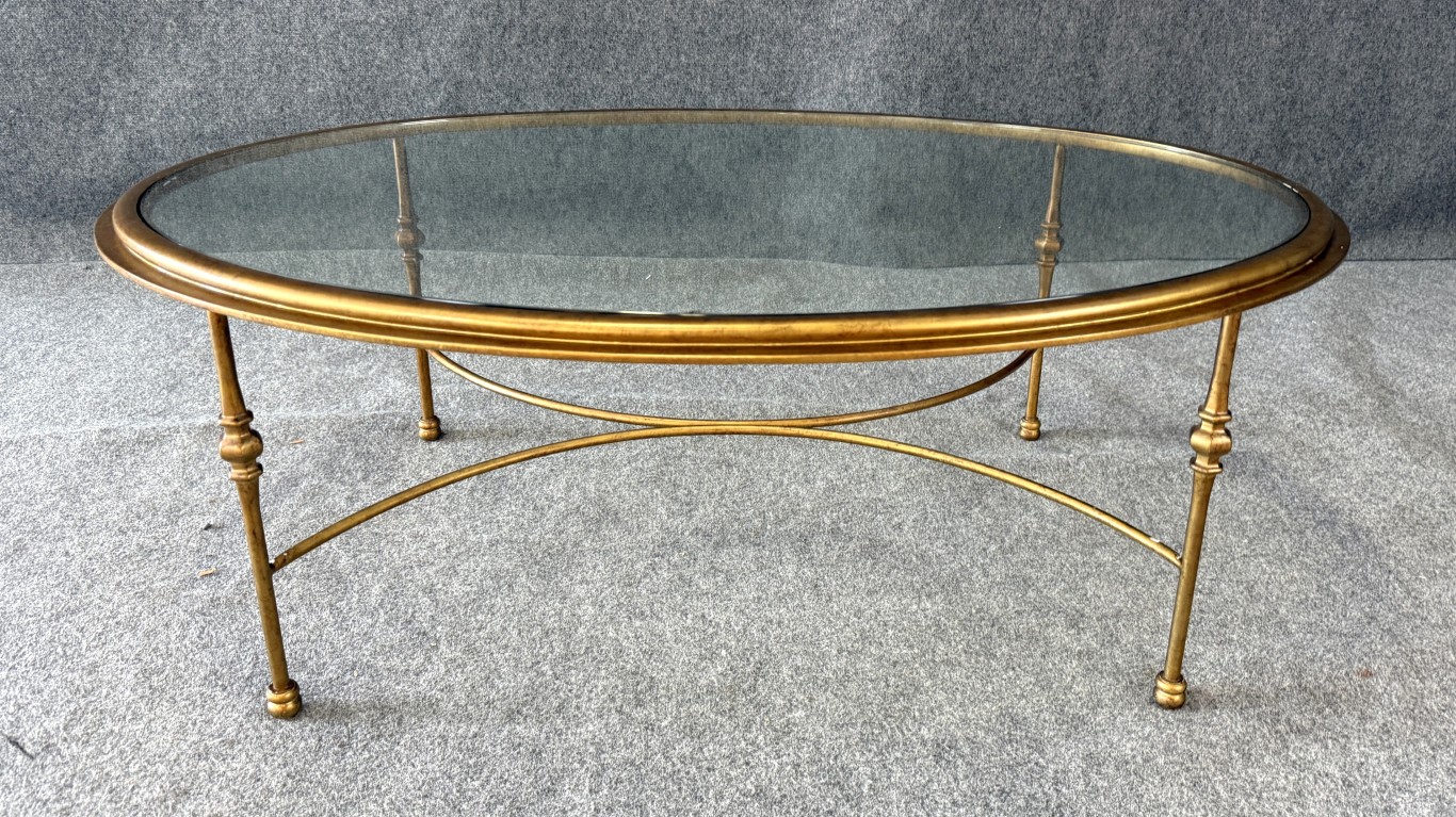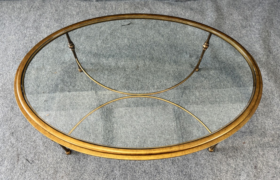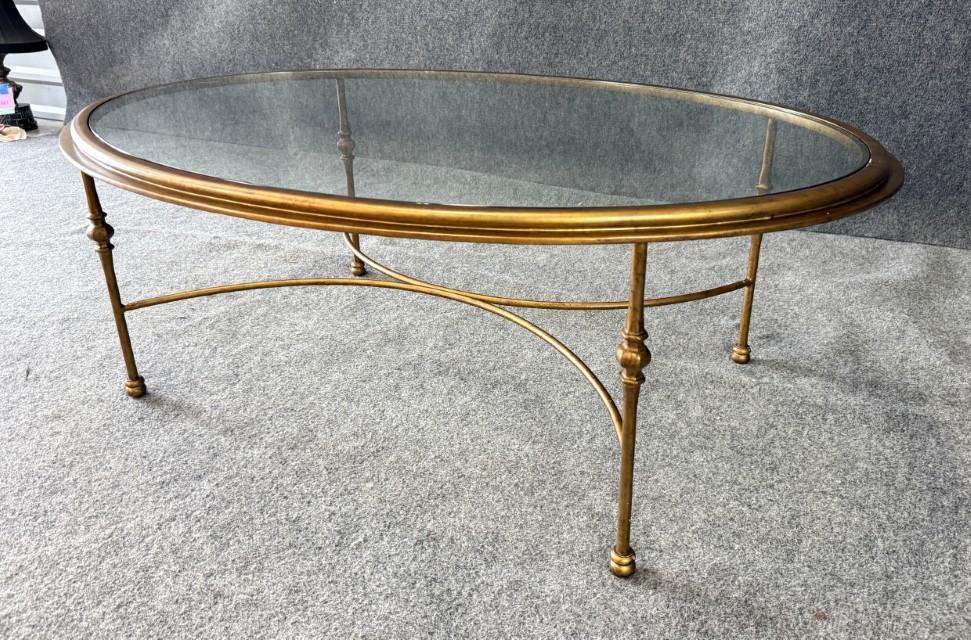 Oval Gold Glass Top Coffee Table