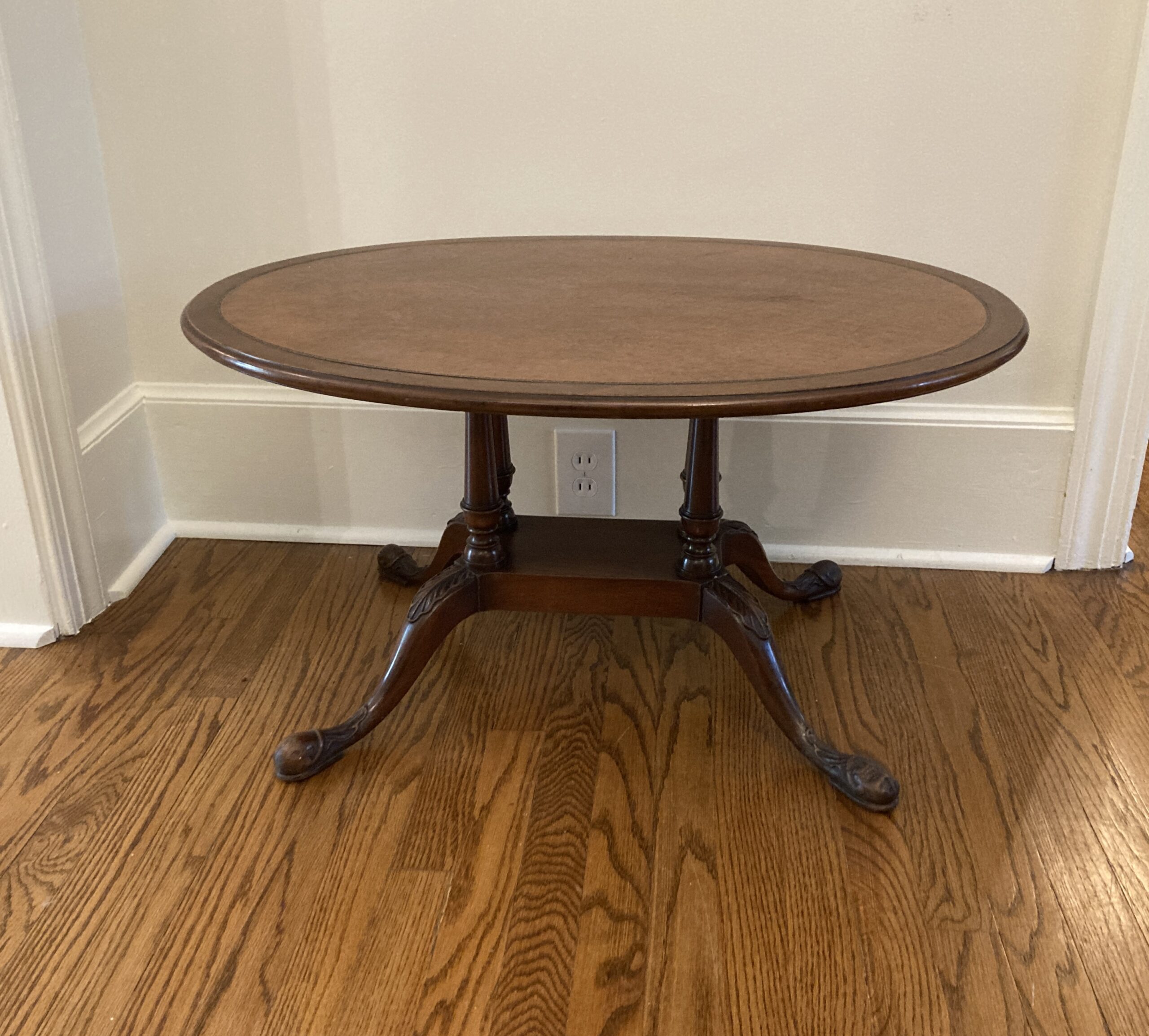 Oval Mahogany Coffee Table with Tooled Leather Top