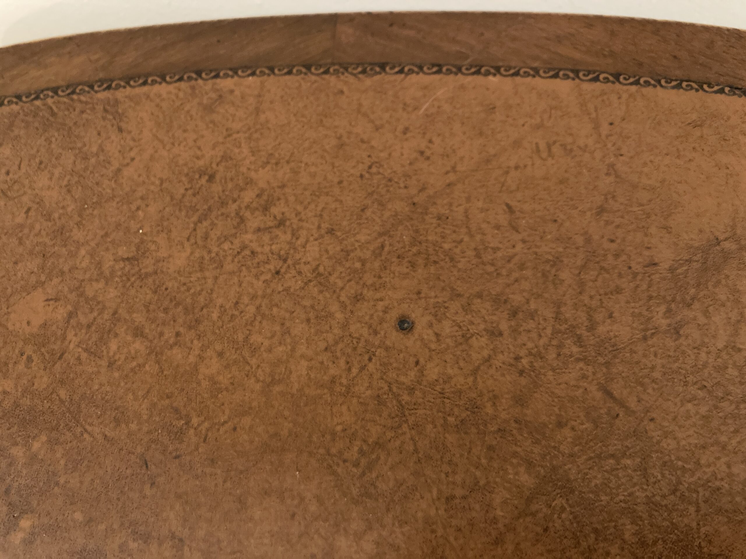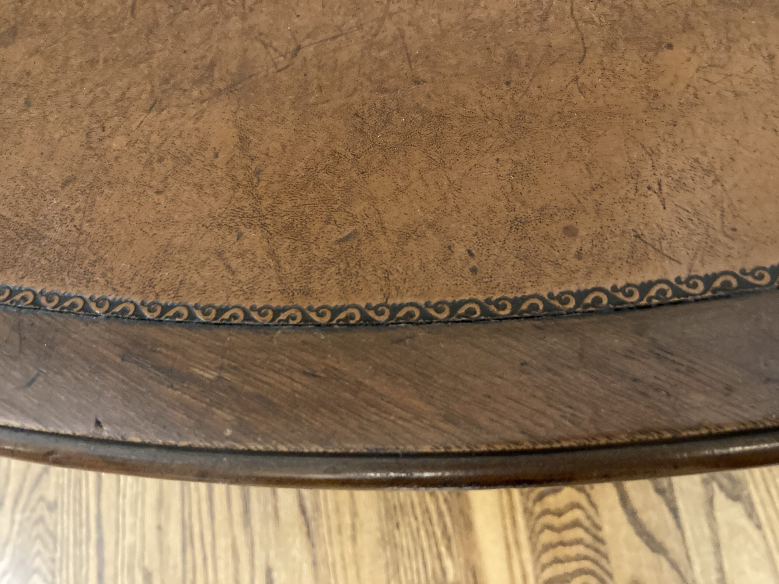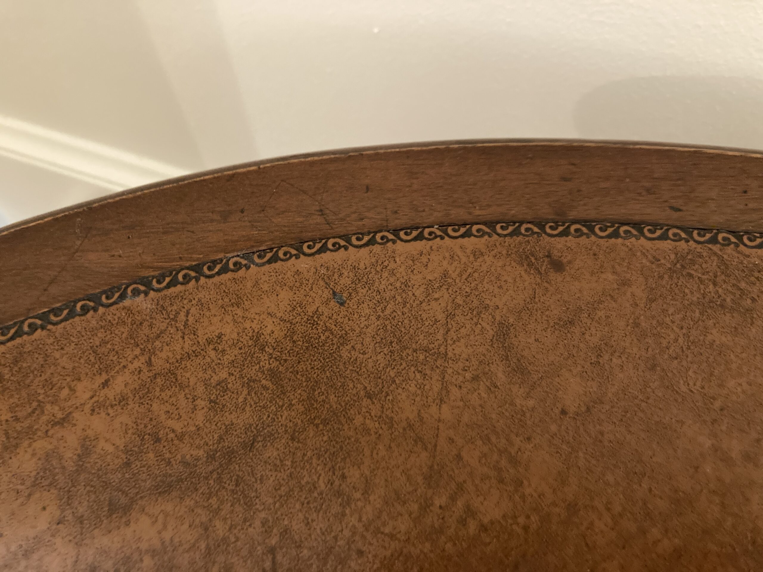 Your happiness with this item is of the utmost importance to us so please review the photographs carefully for condition. We endeavor to try and list any issues we may observe; we may not necessarily note all minor nicks and dings or we may simply miss something. Please inspect carefully to ensure your full happiness with this item. For this particular piece we found minor wear consistent with age and prior use, including a few very small blemishes to the tooled leather top as pictured.