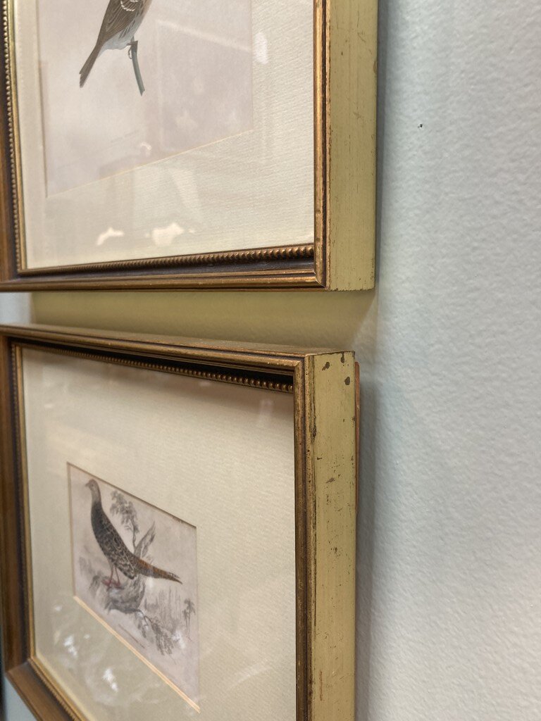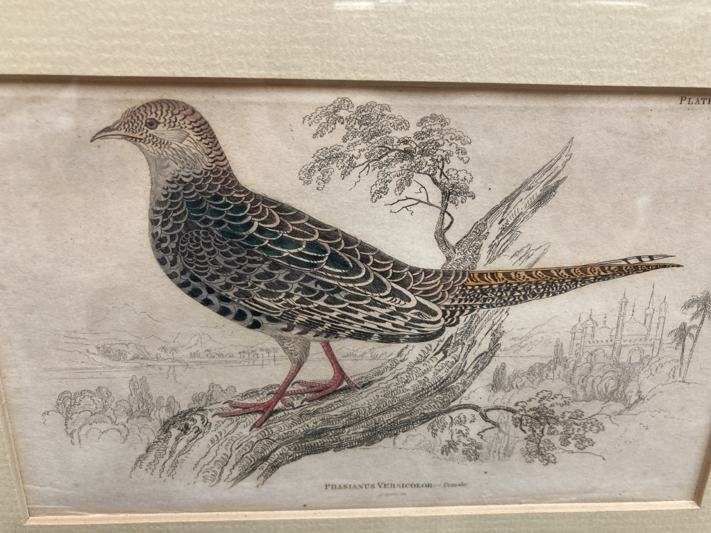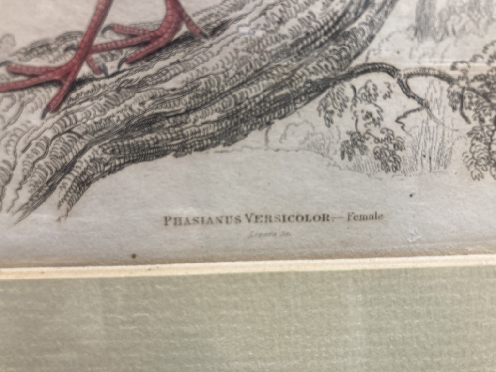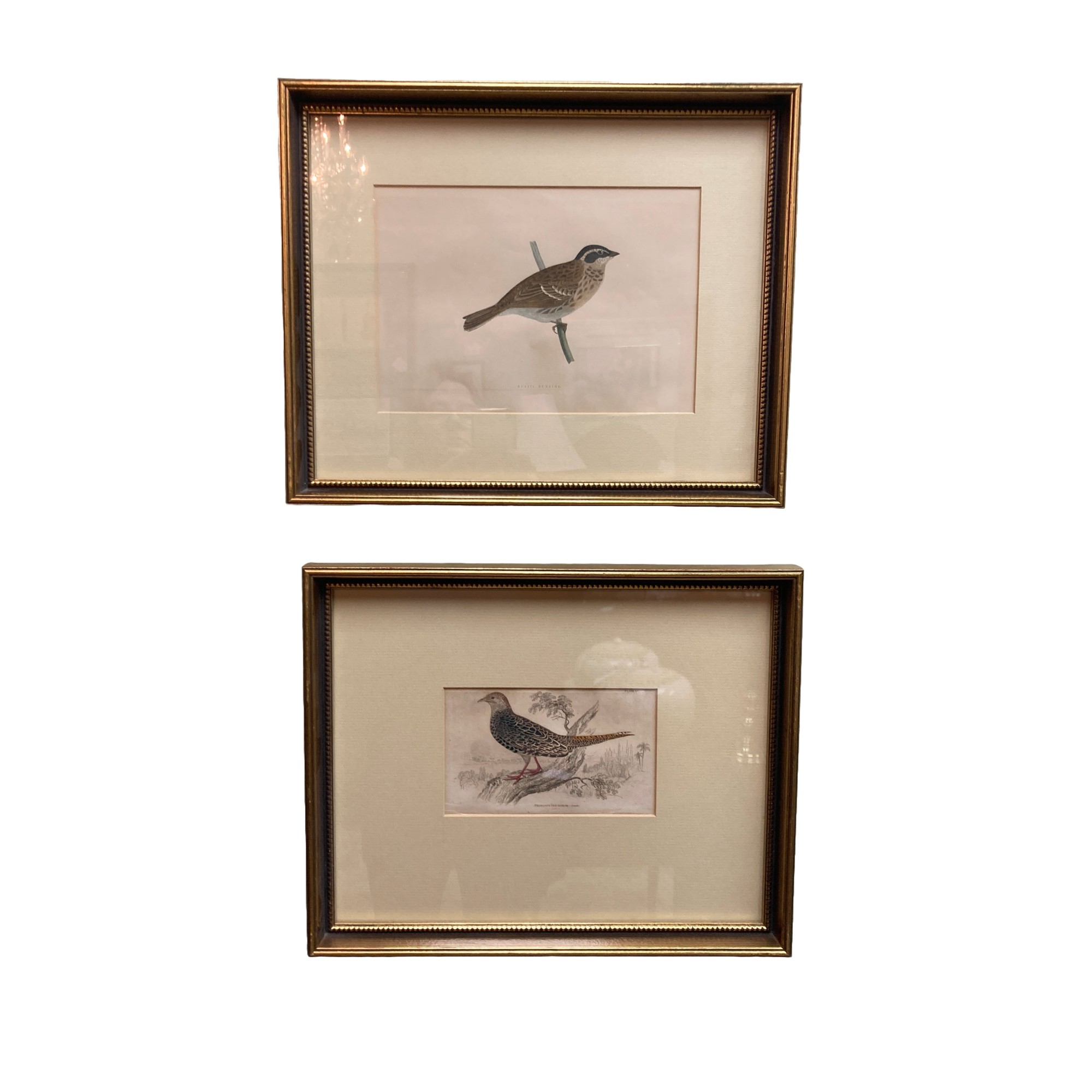 Pair of Antique Hand Colored Bird Engravings, Pheasant and Bunting