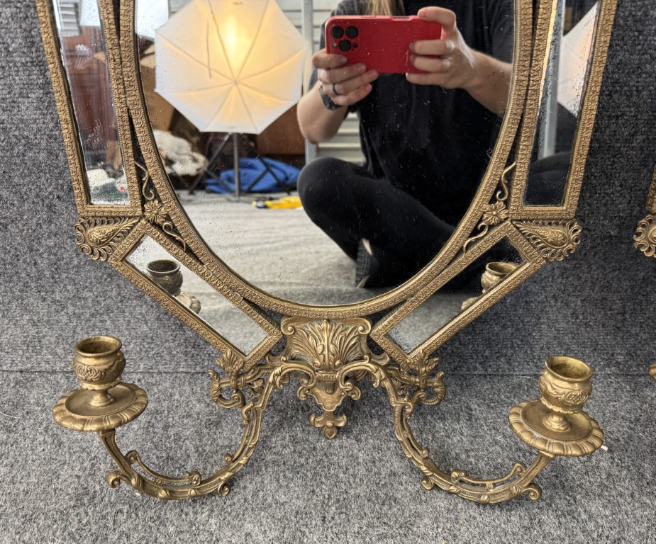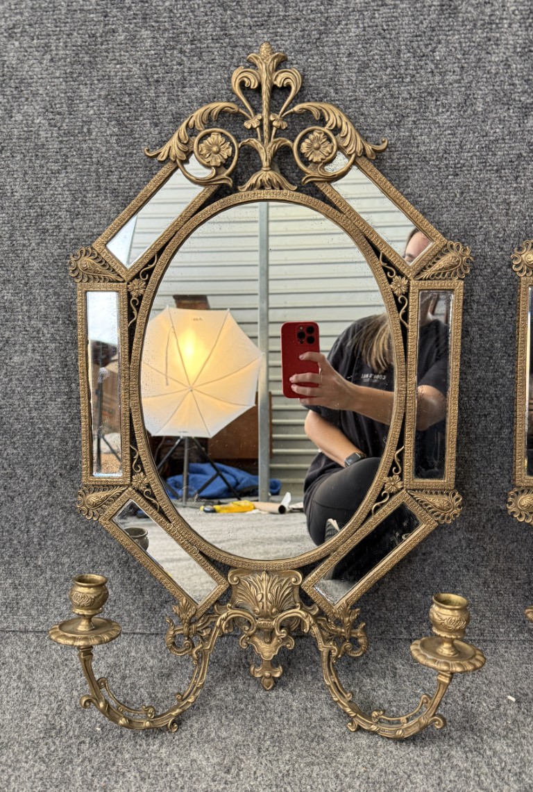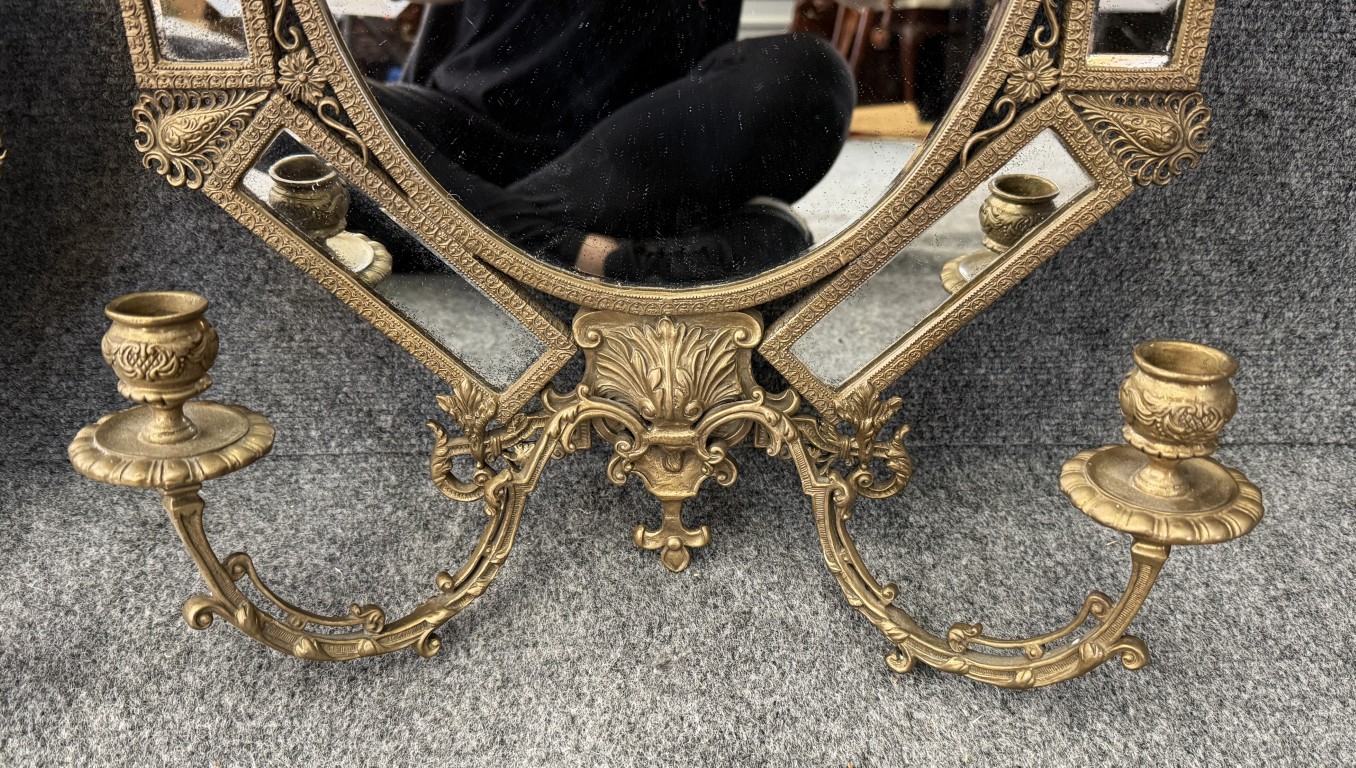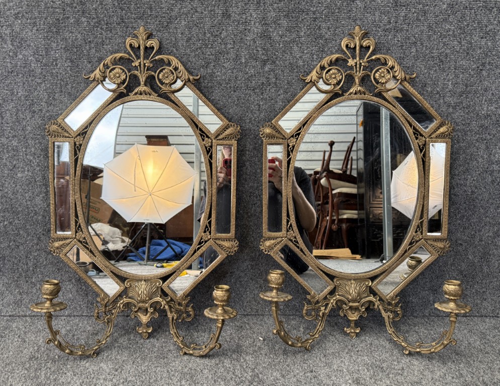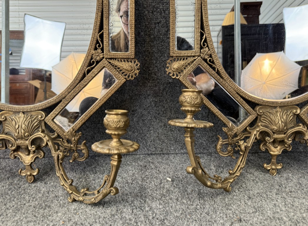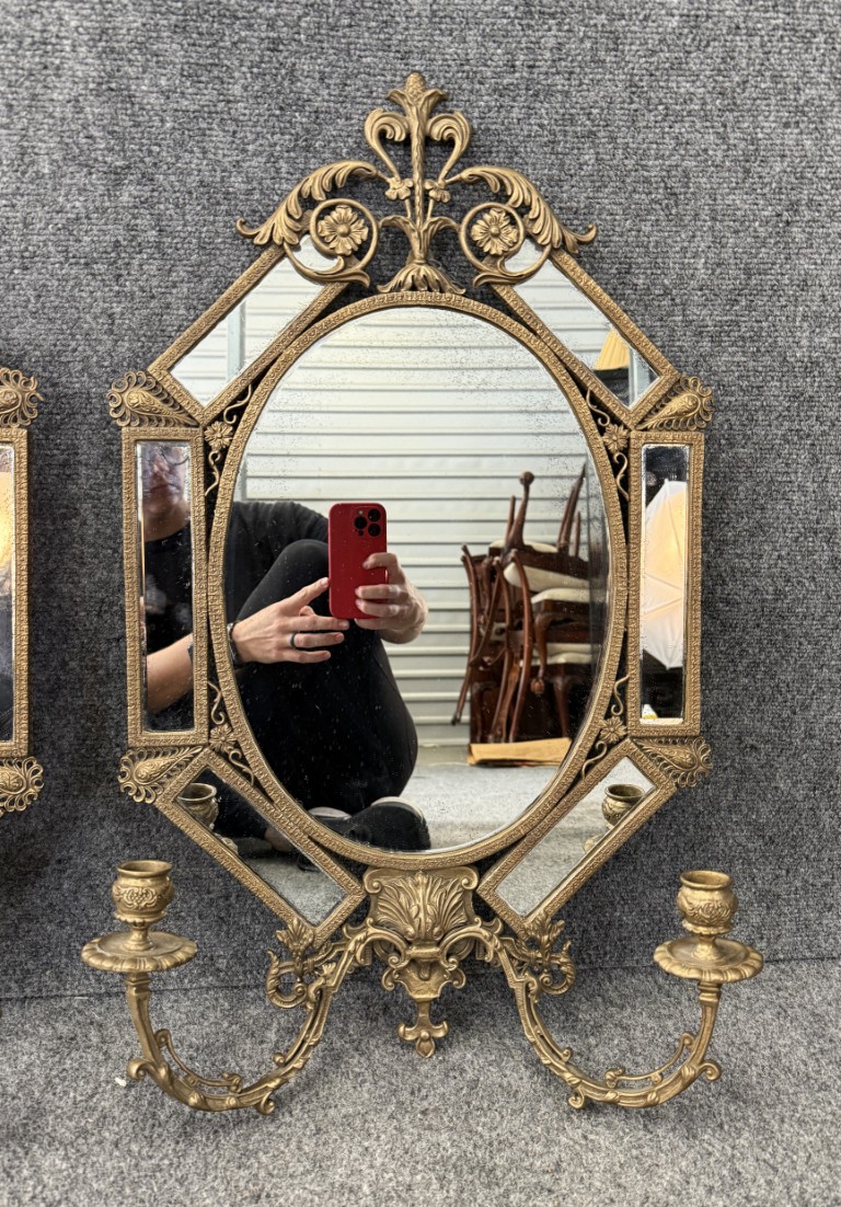 Pair of Brass Renaissance Style Girandole Mirrors with Candleholders