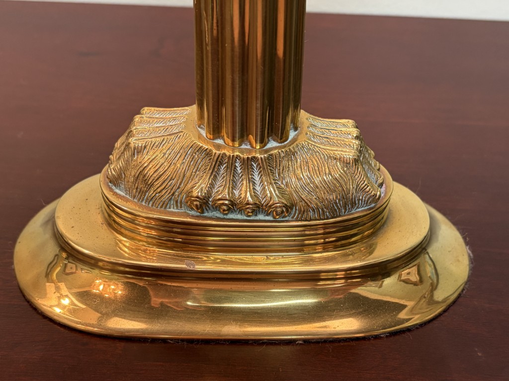Your happiness with this item is of the utmost importance to us so please review the photographs carefully for condition. We endeavor to try and list any issues we may observe; we may not necessarily note all minor nicks and dings or we may simply miss something. Please inspect carefully to ensure your full happiness with this item. For this particular piece we found minor wear consistent with age and prior use, including an area of discoloration to the column of one lamp as pictured.