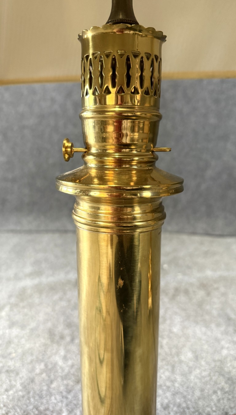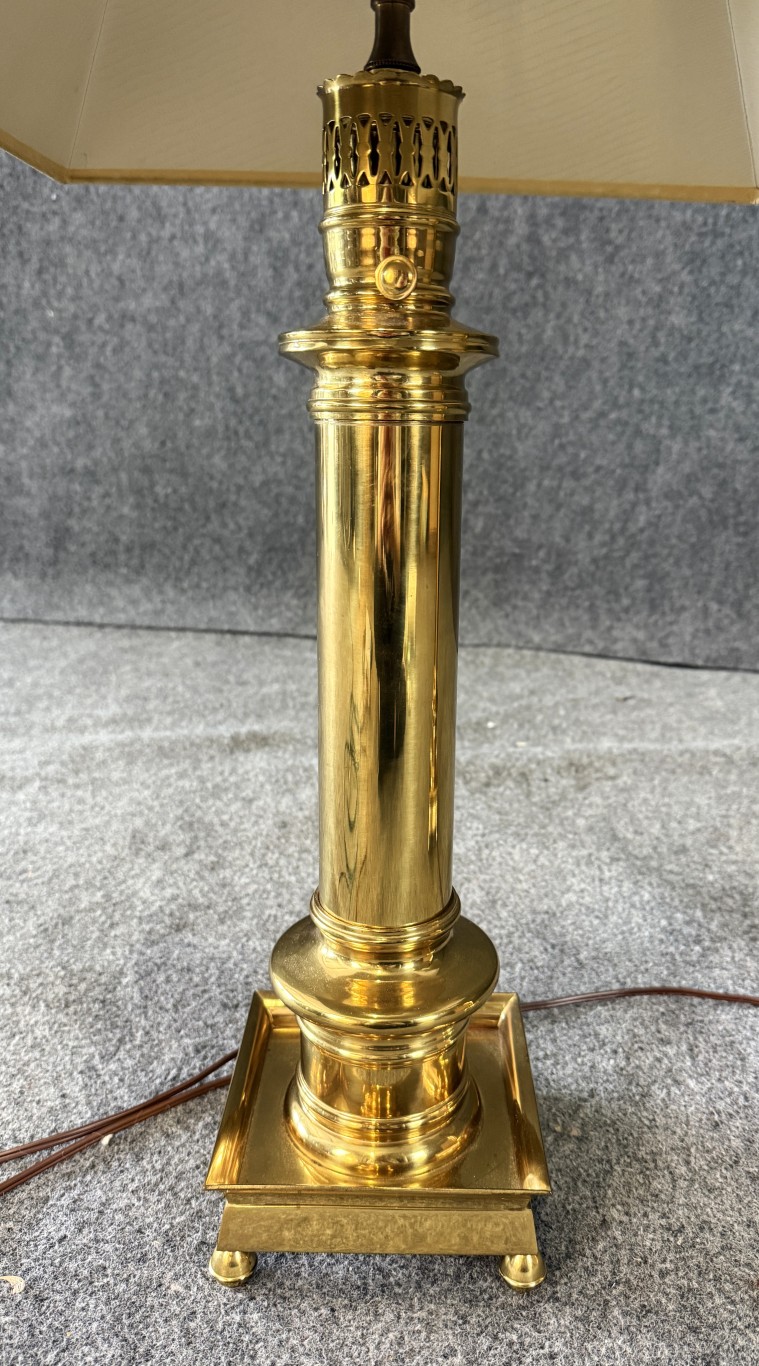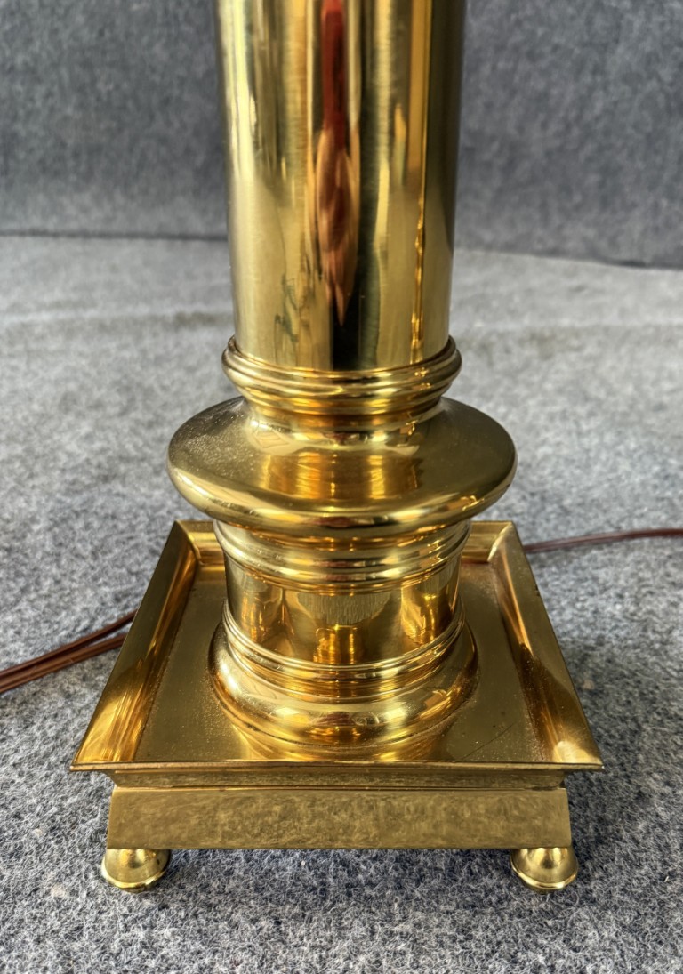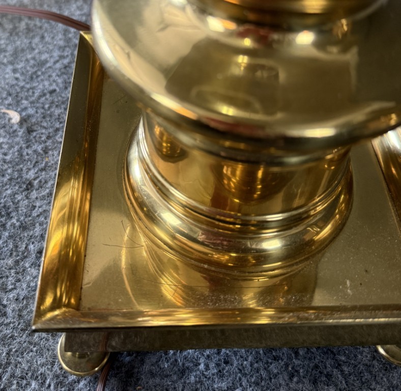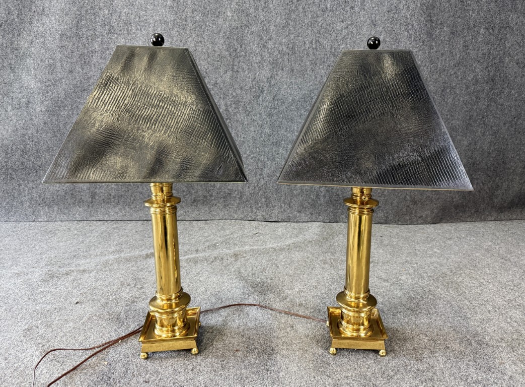Pair of Heavy Brass Table Lamps with Black Shades