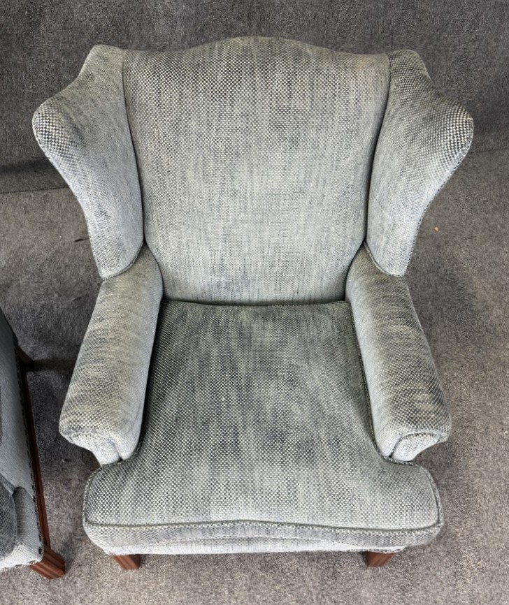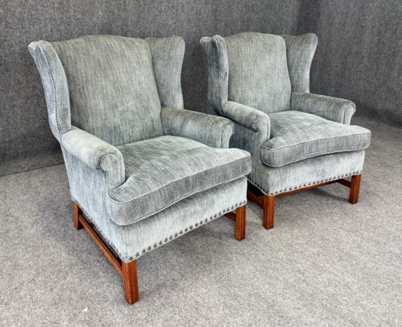 Pair of High End Upholstered Wingback Arm Chairs