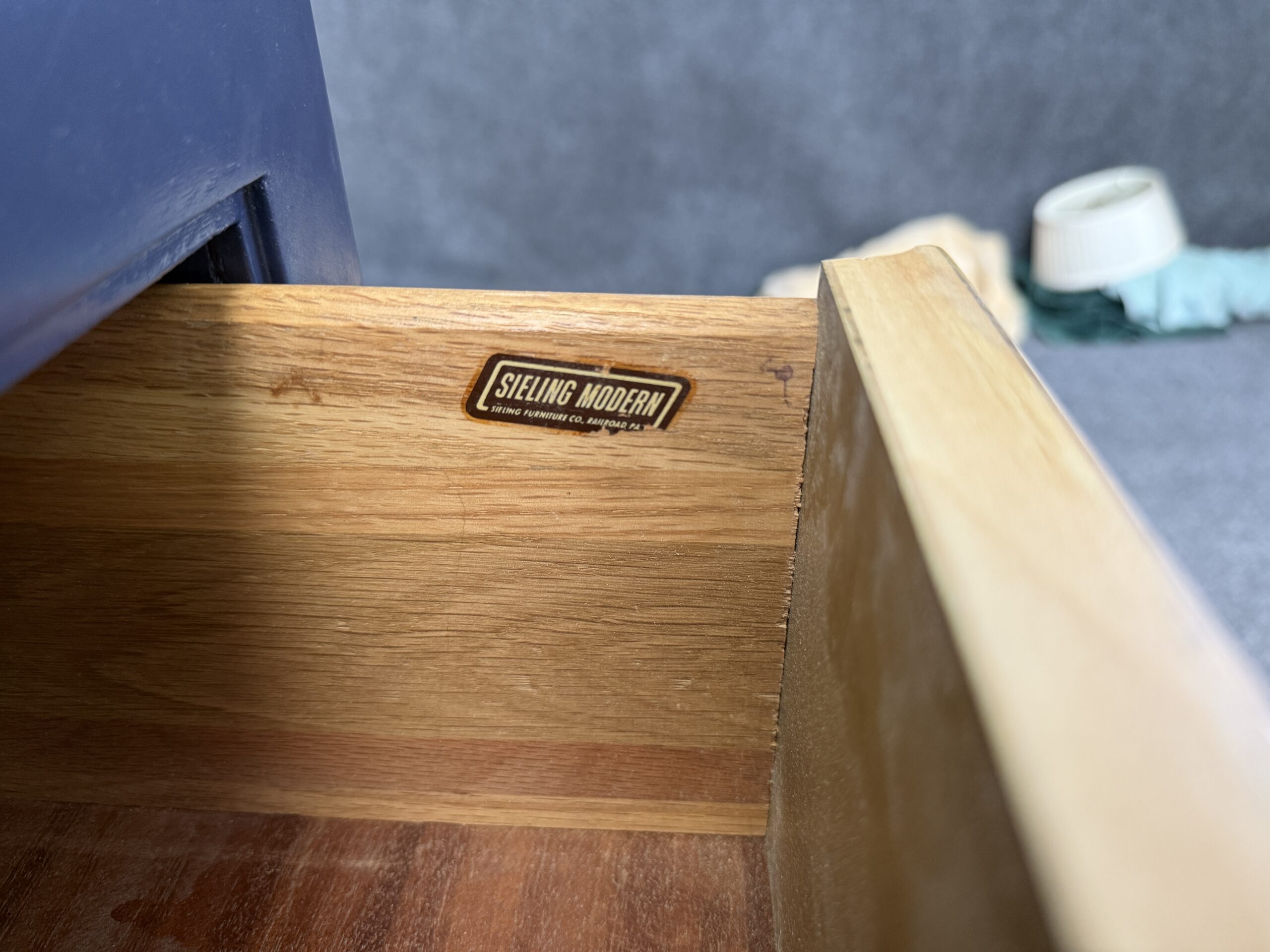 Pair of Maple and Blue Lacquered Nightstands
