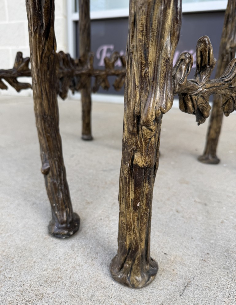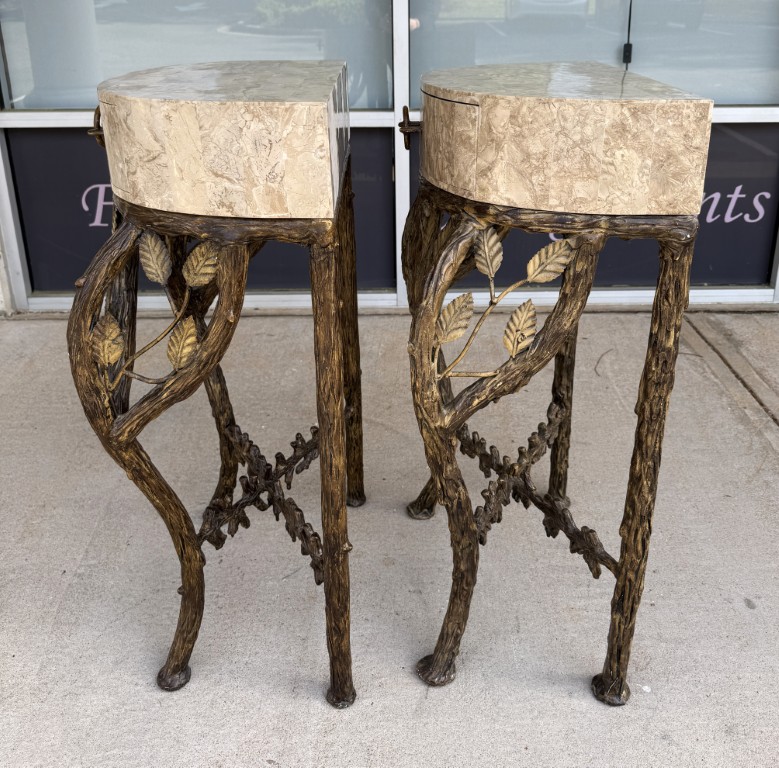 Pair of Tessellated-Faux Marble One-Drawer Tables with Metal Tree Branch Bases