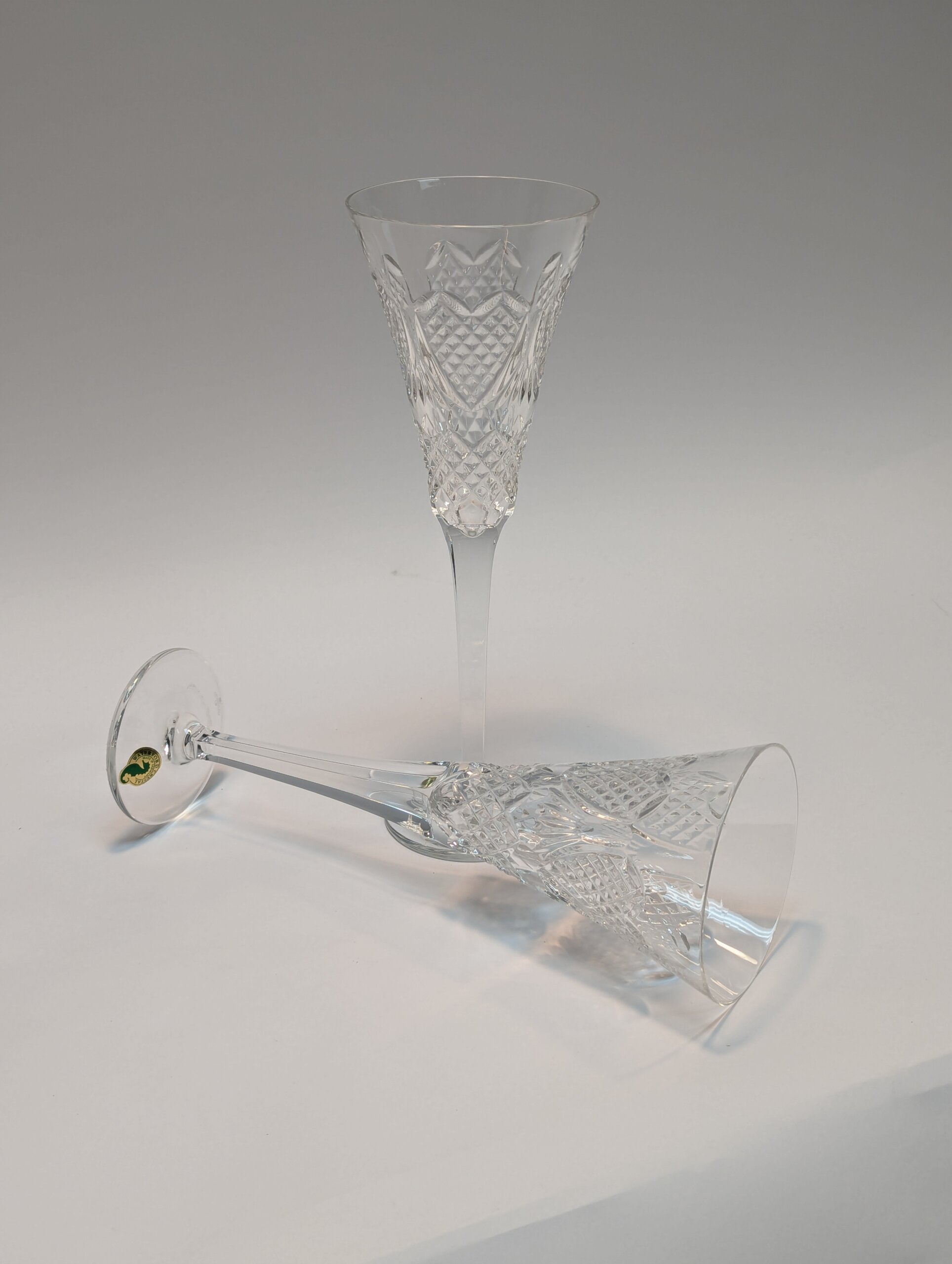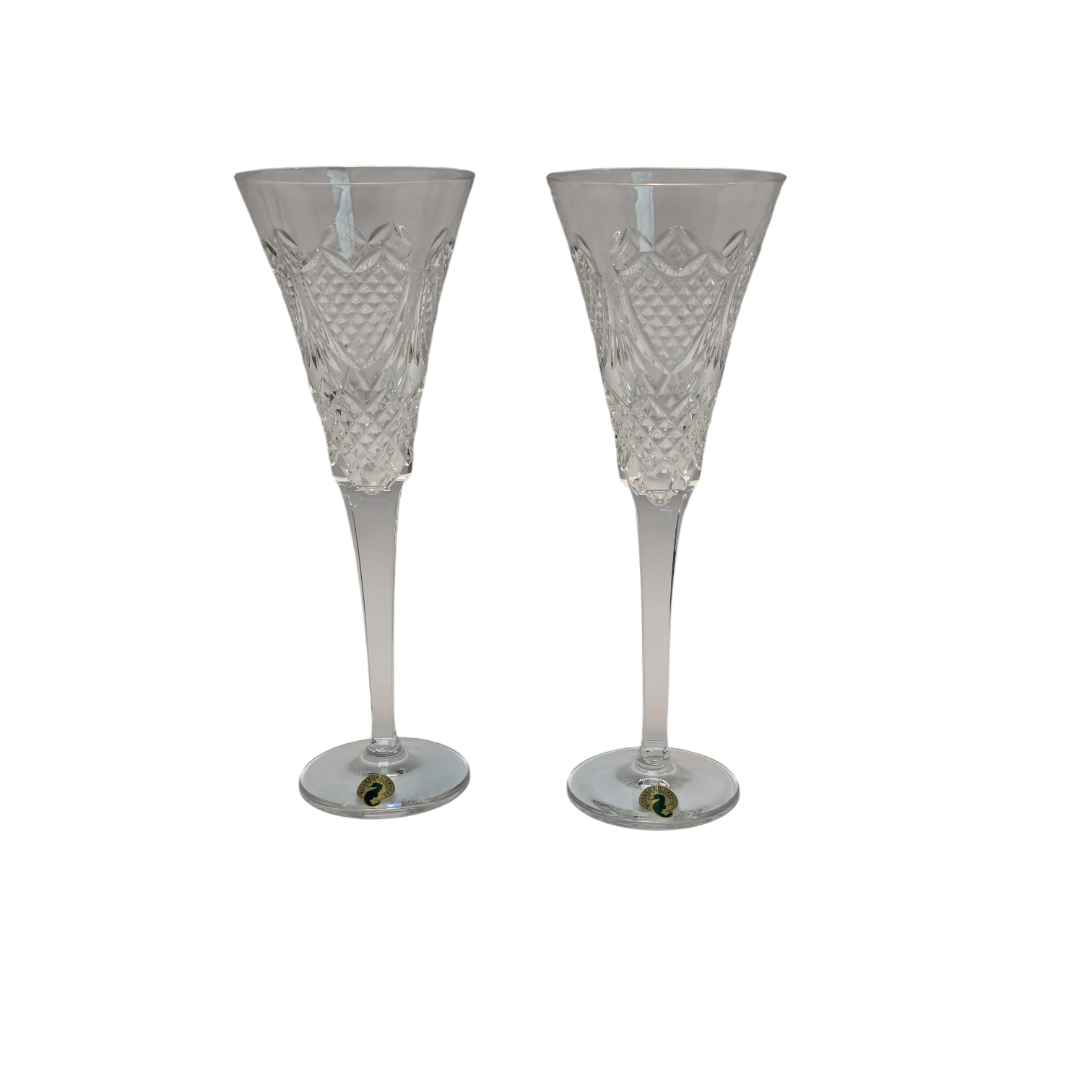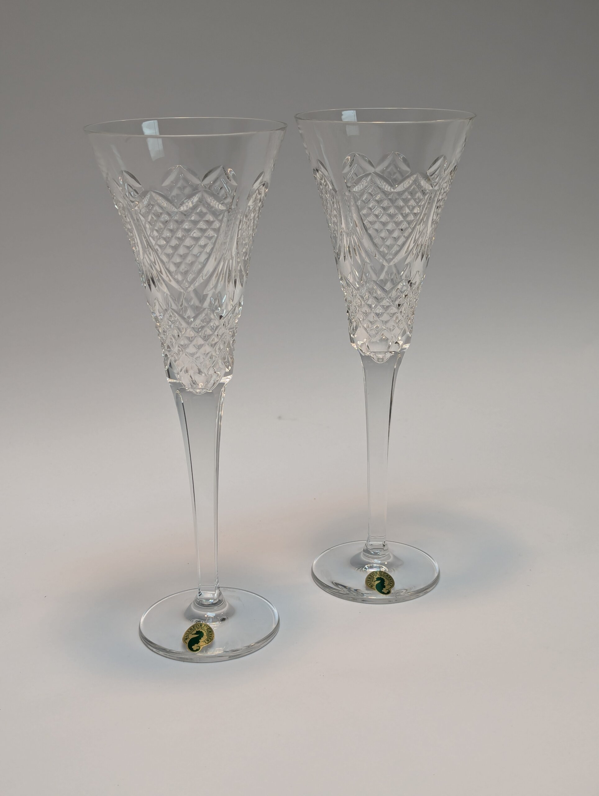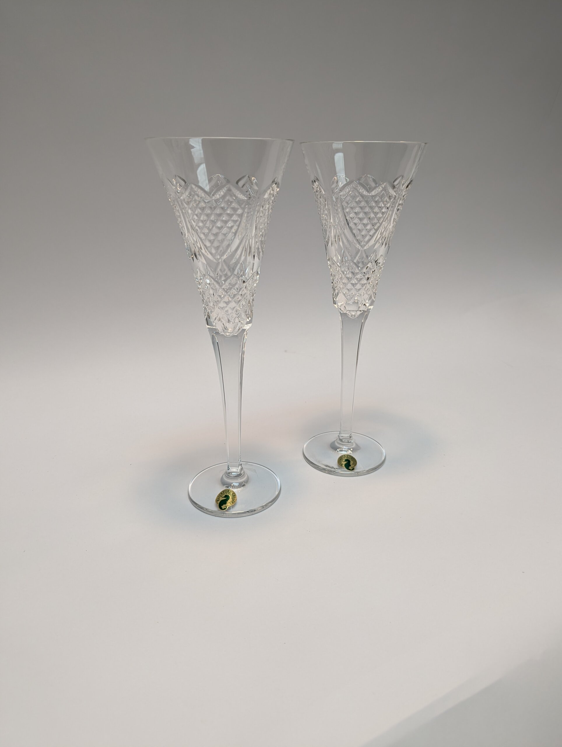 Pair of Waterford Crystal Champagne flutes. Vintage wedding “heirloom” pattern [circa 1995].