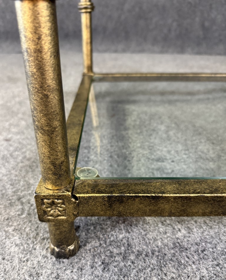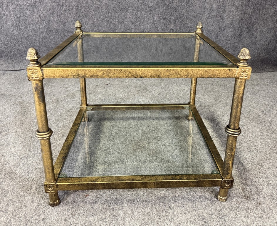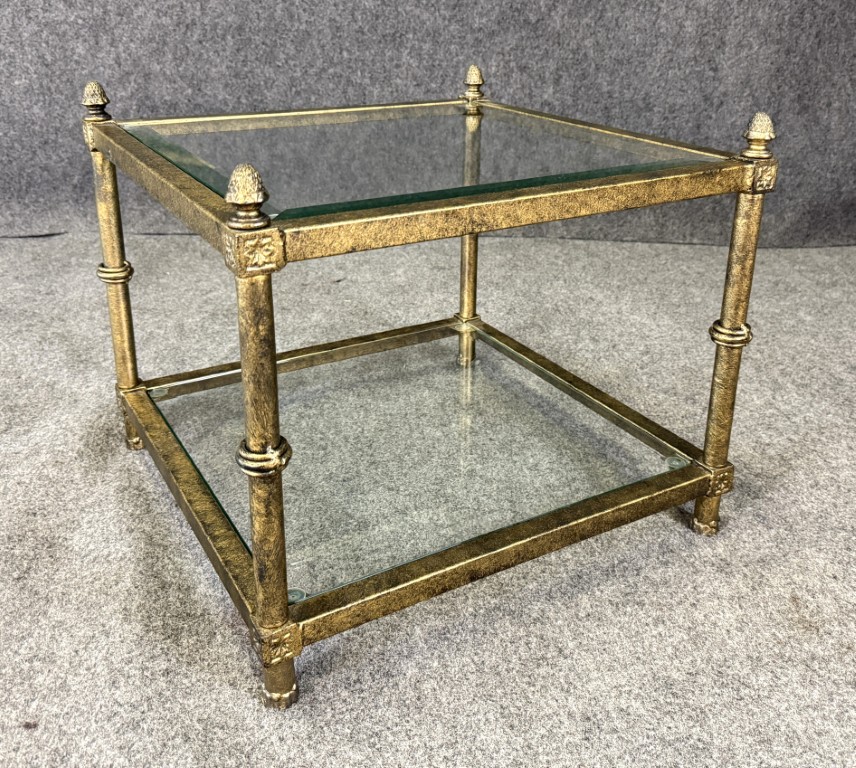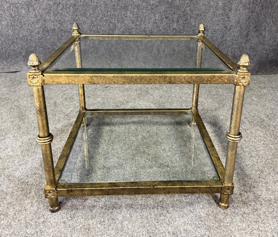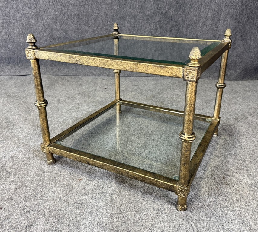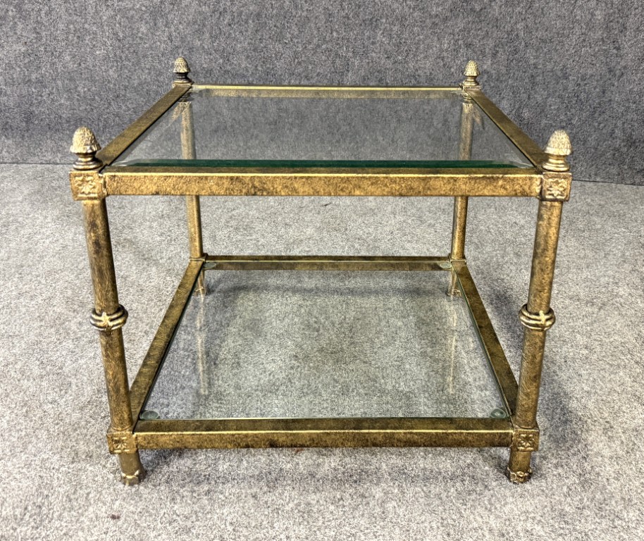 This petite metal and glass side table features a delicate, airy frame topped with a clear glass surface that keeps the look light and elegant. The sculptural paw feet add a charming decorative touch, lending subtle classical flair. Perfect as an accent or occasional table, it offers visual interest without overwhelming a space.