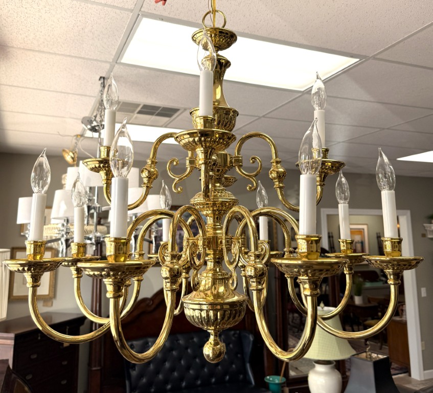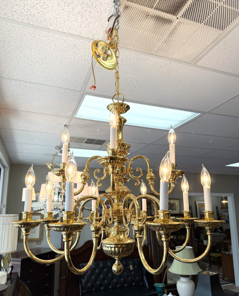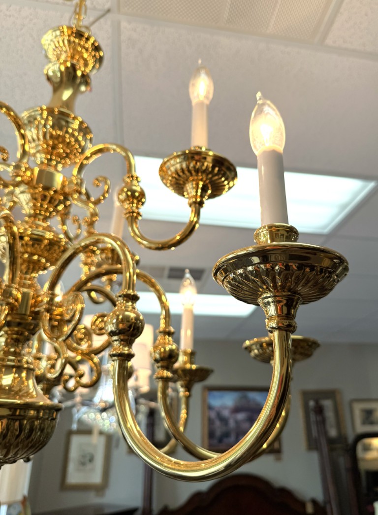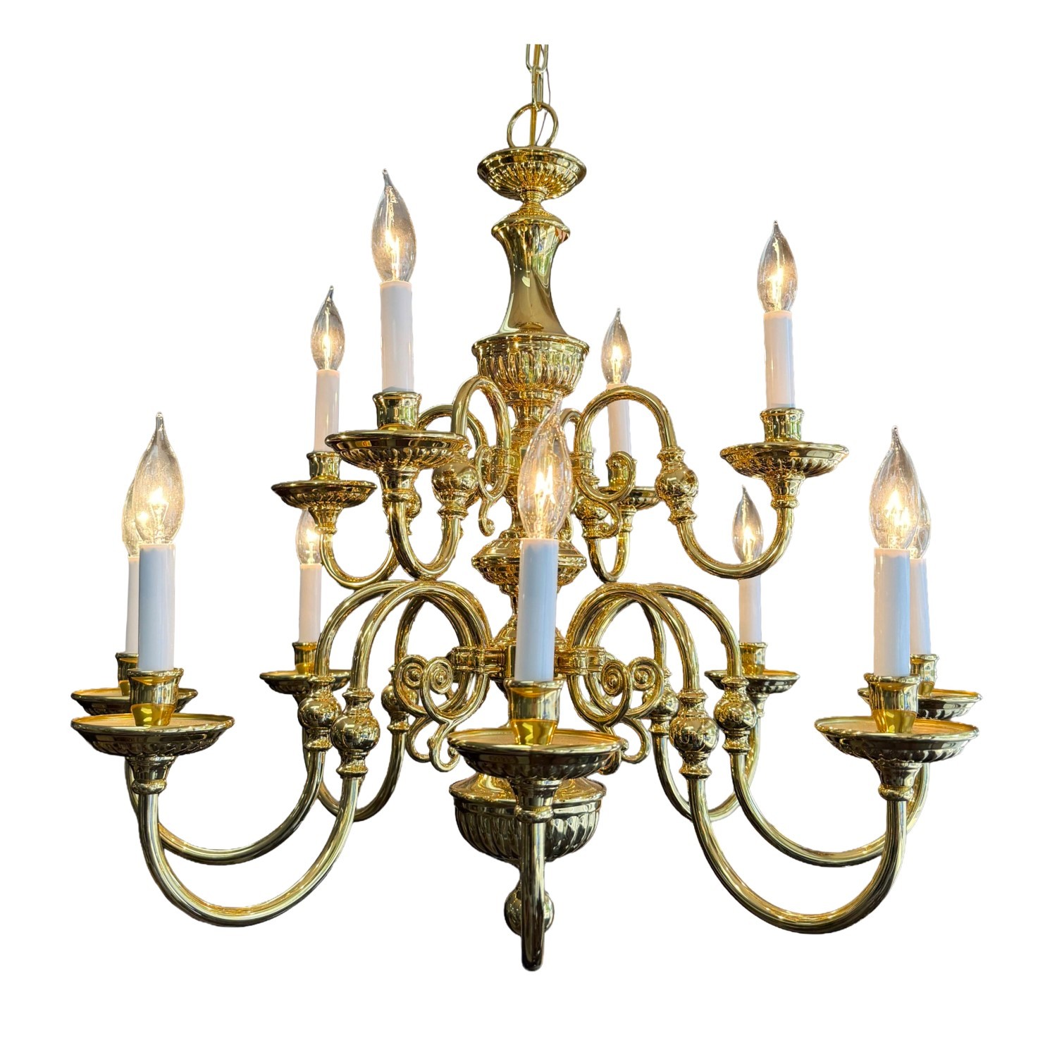 Quoizel 12-Arm Williamsburg Style Brass Chandelier