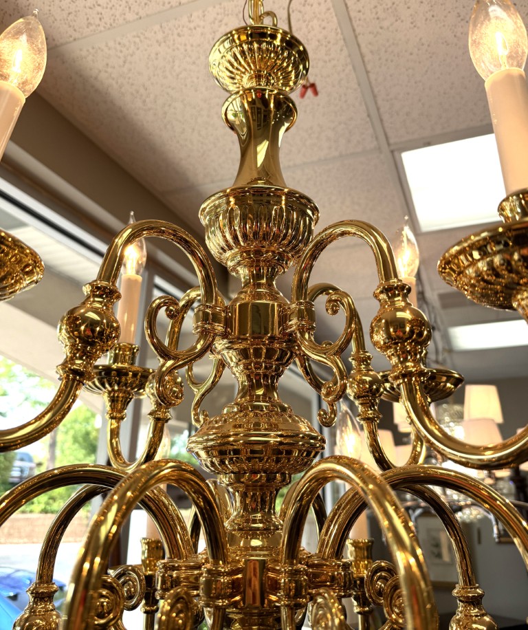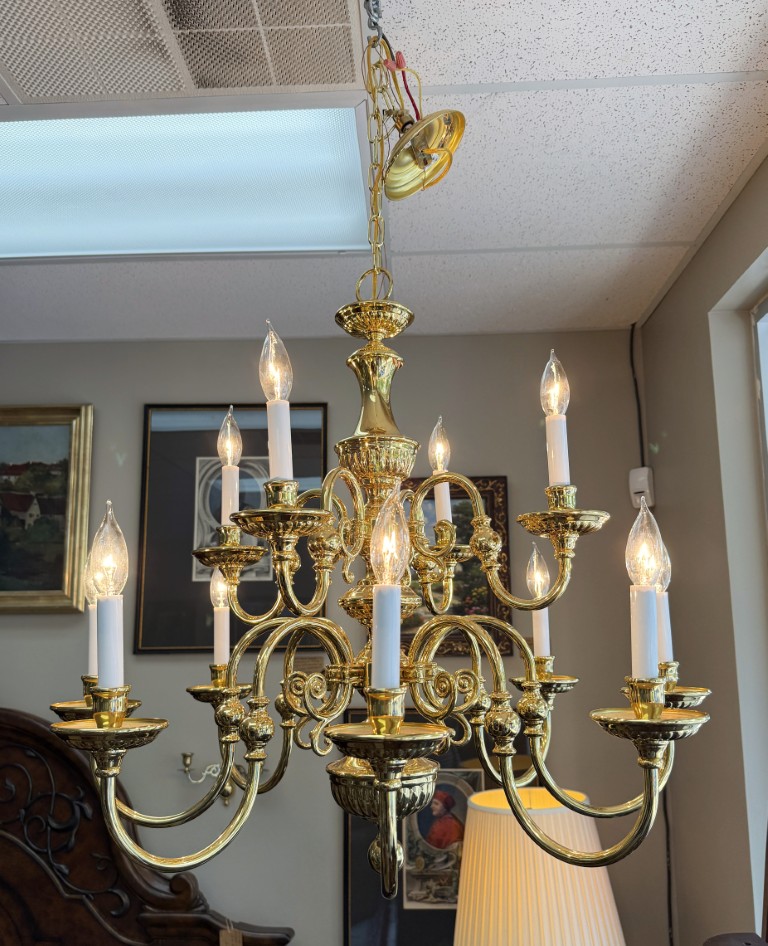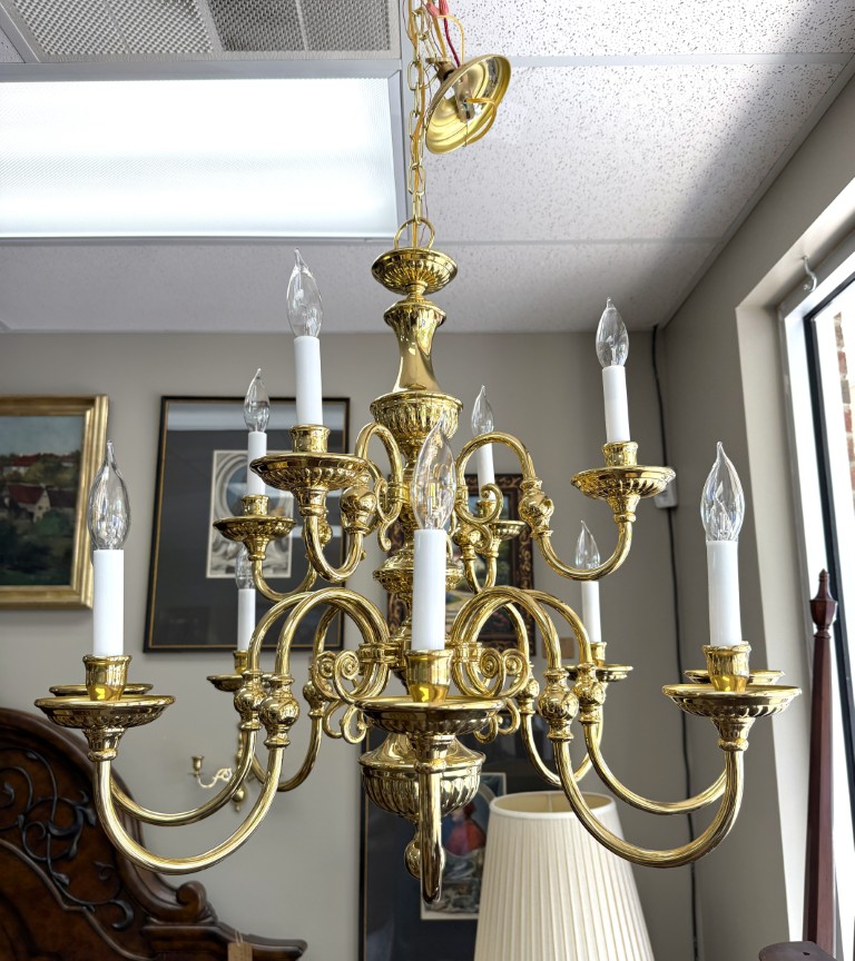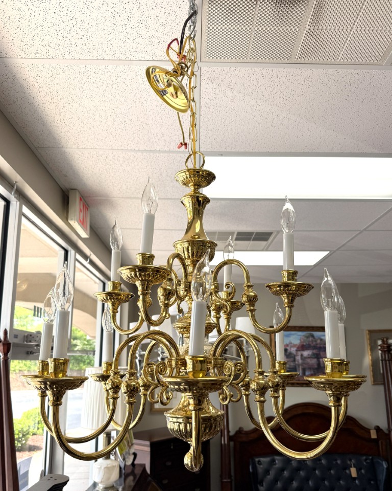 Quoizel 12-Arm Williamsburg Style Brass Chandelier