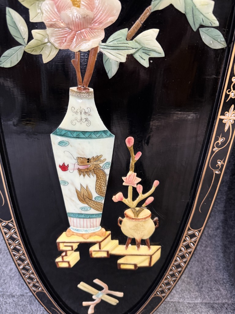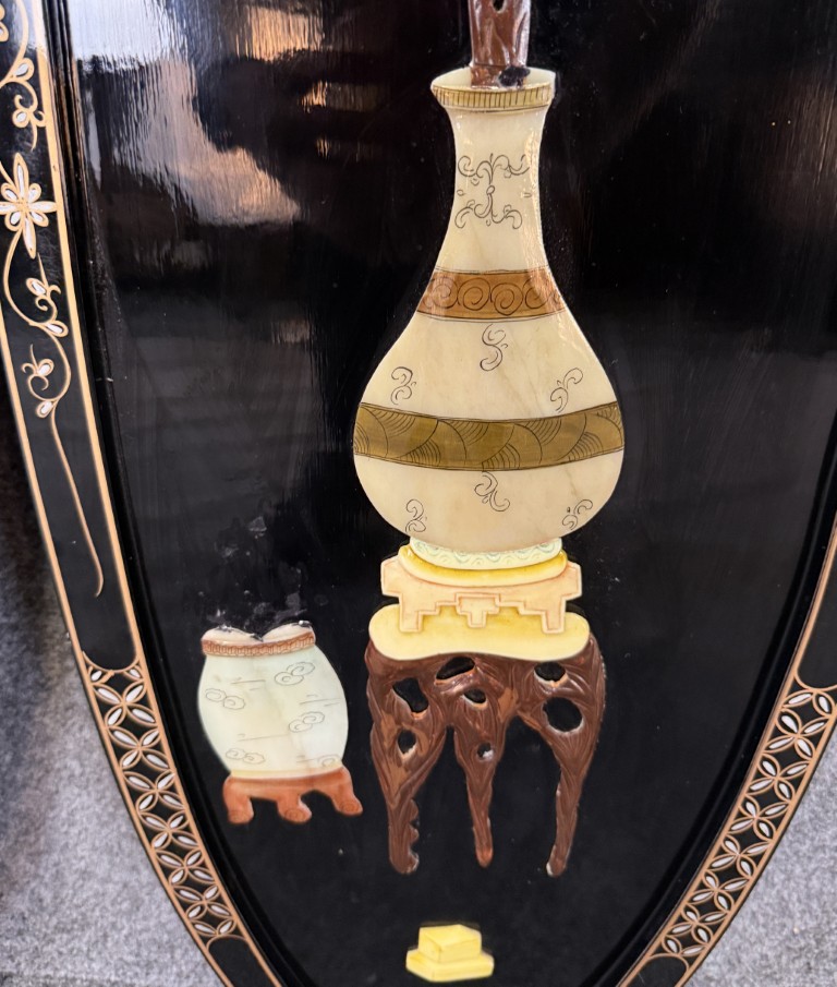 Your happiness with this item is of the utmost importance to us so please review the photographs carefully for condition. We endeavor to try and list any issues we may observe; we may not necessarily note all minor nicks and dings or we may simply miss something. Please inspect carefully to ensure your full happiness with this item. For this particular piece we found wear consistent with age and prior use, including one panel missing a piece of mother of pearl.