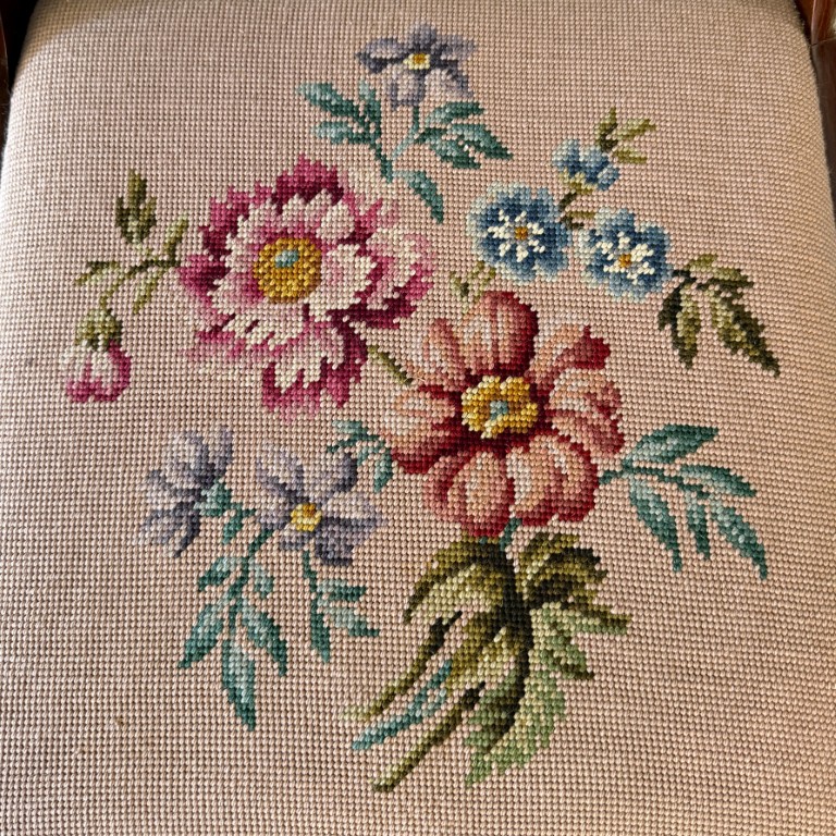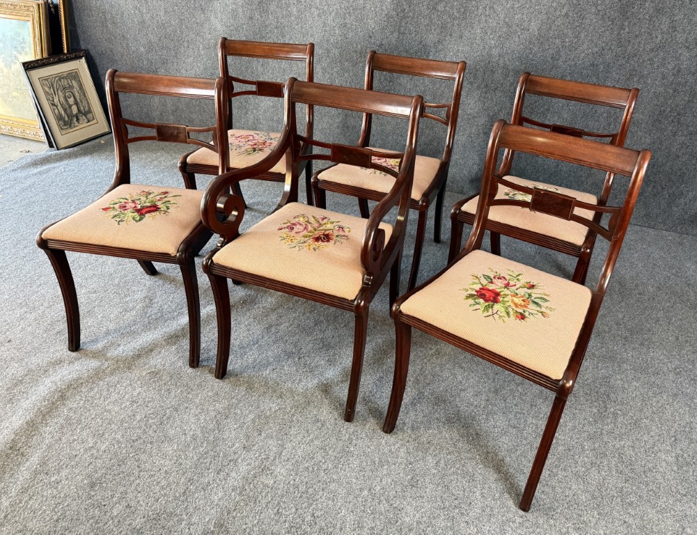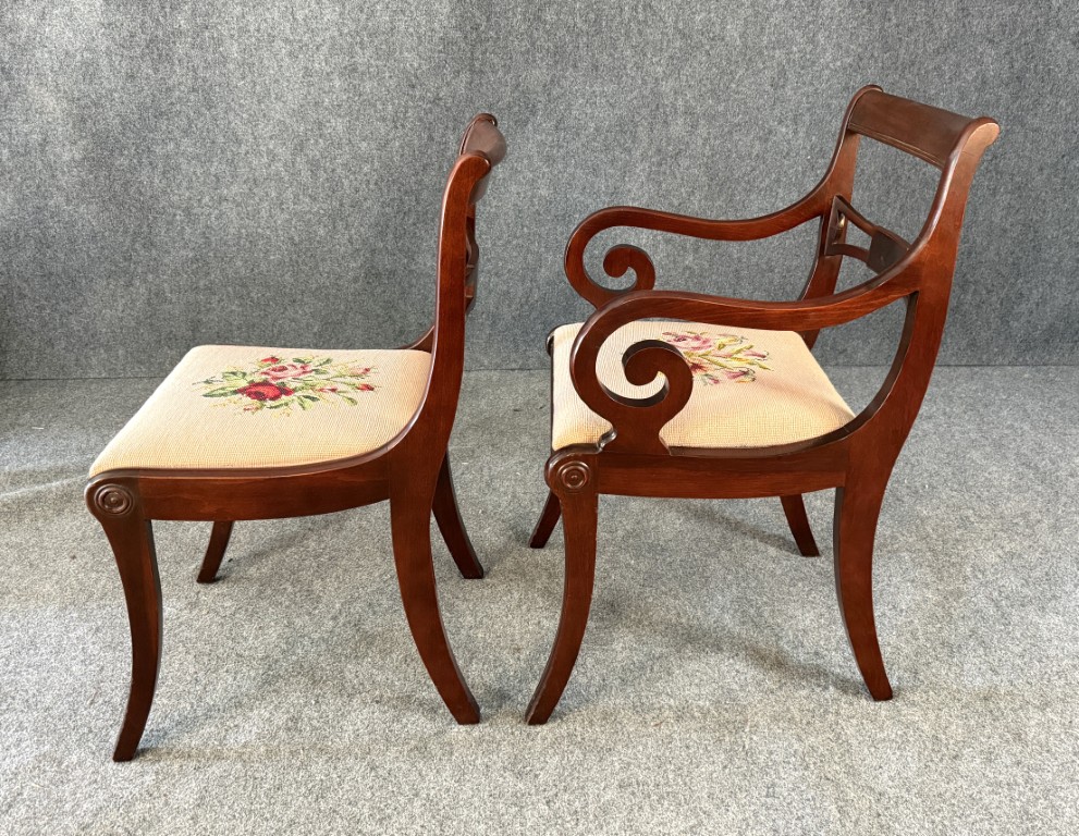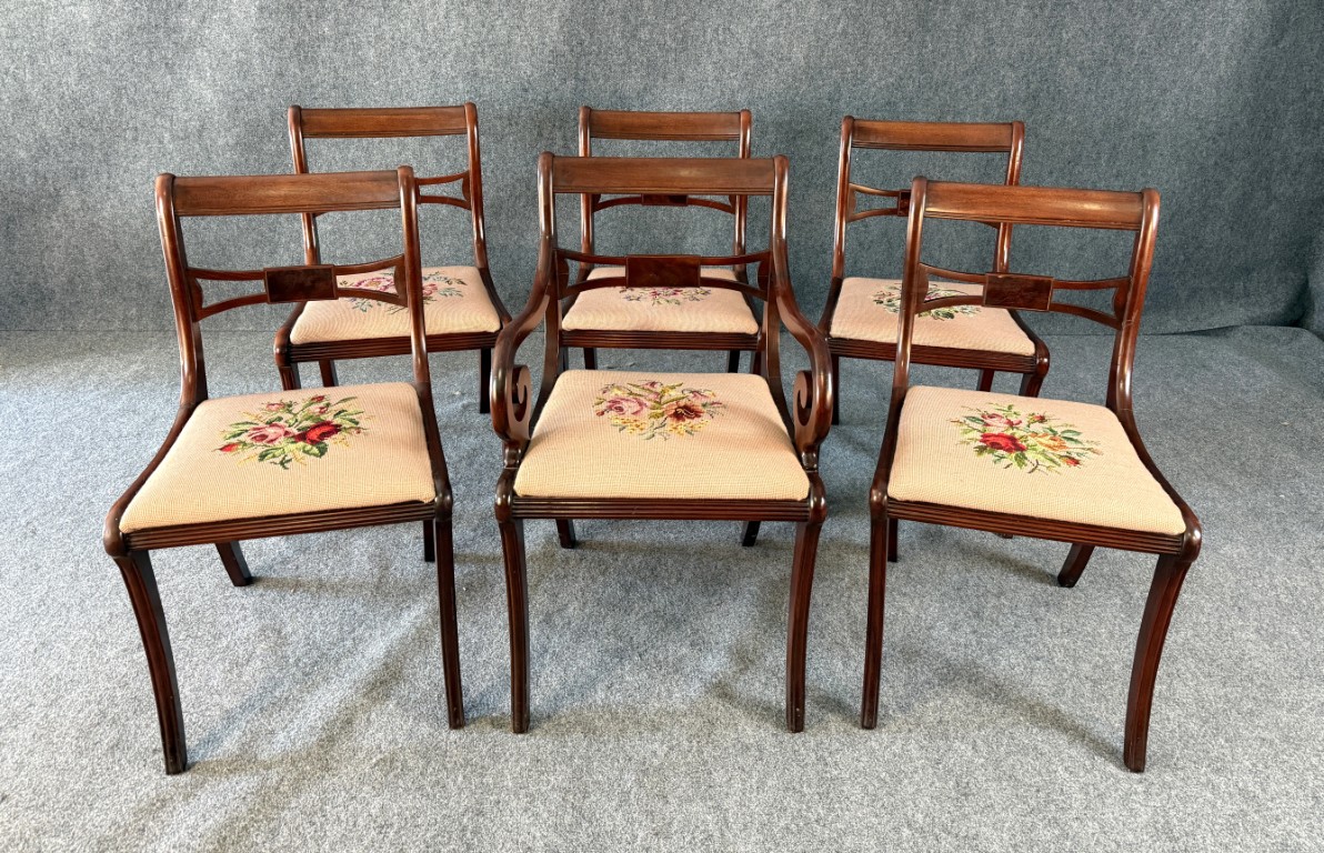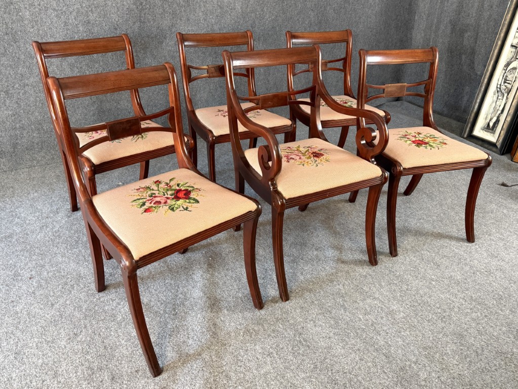 Set of 6 1960s Mahogany Dining Chairs with Needlepoint Seats