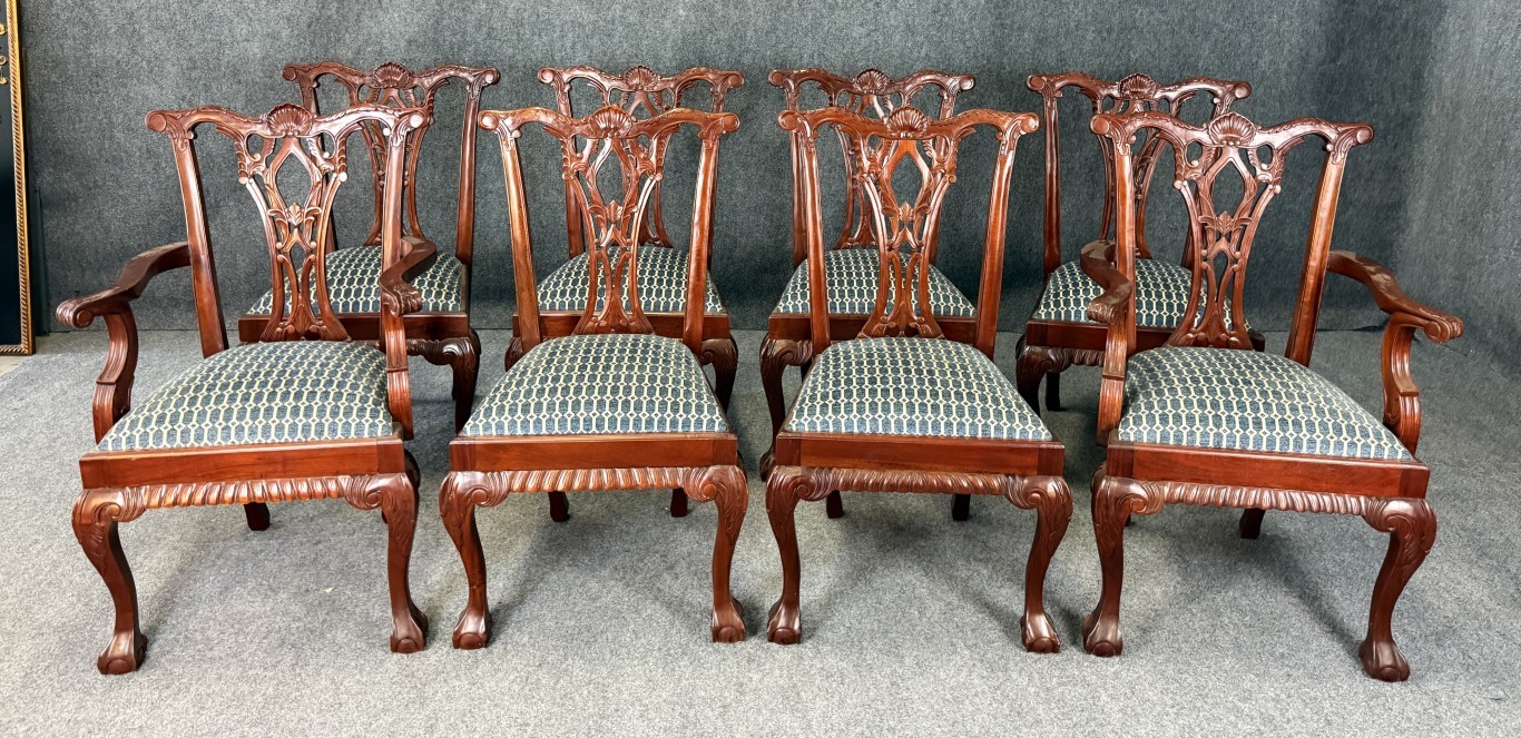 Set of 8 Carved Mahogany Chippendale-Style Dining Chairs
