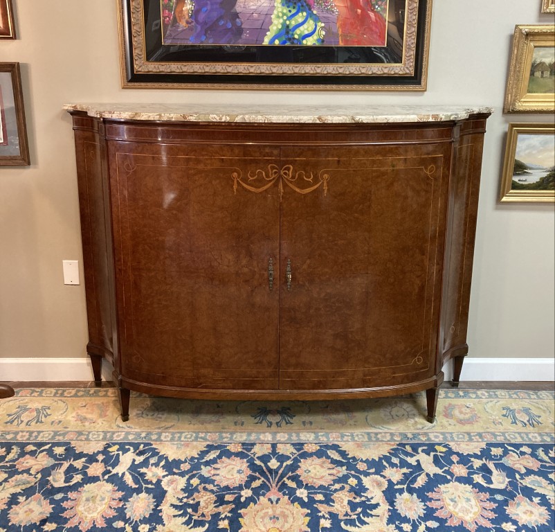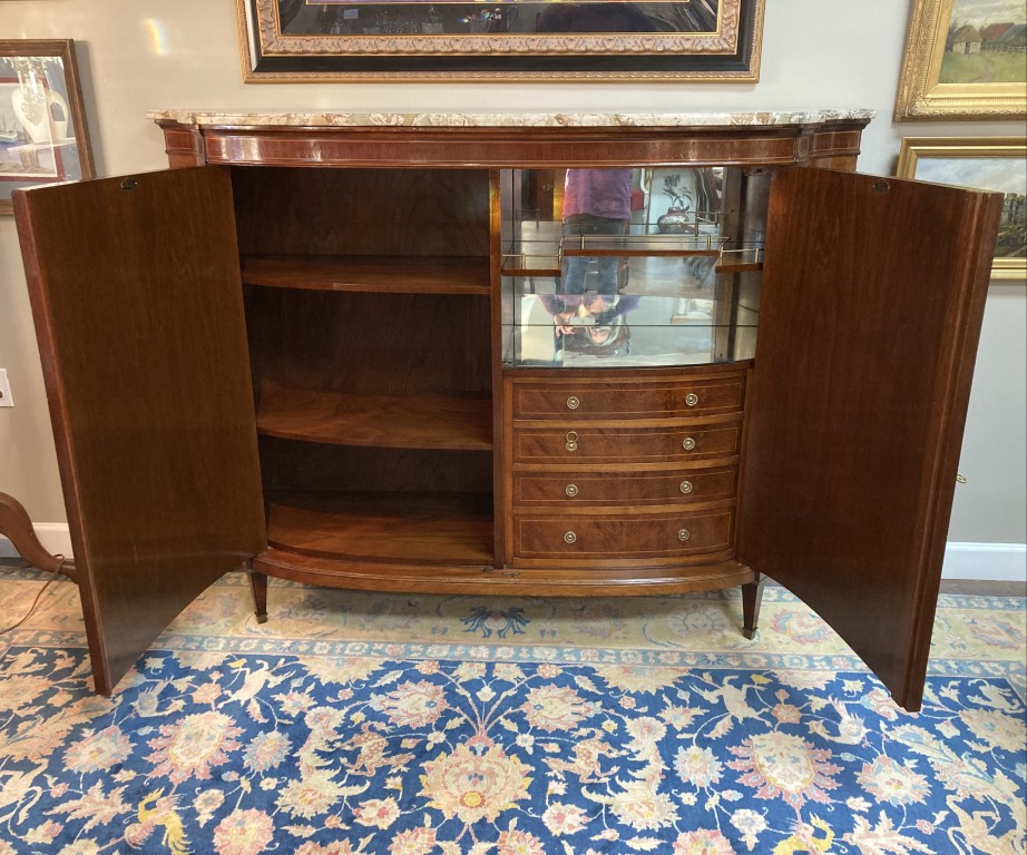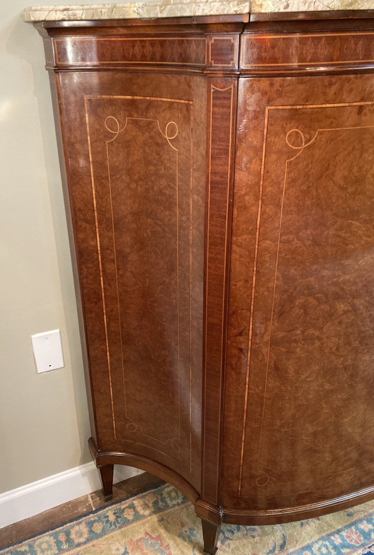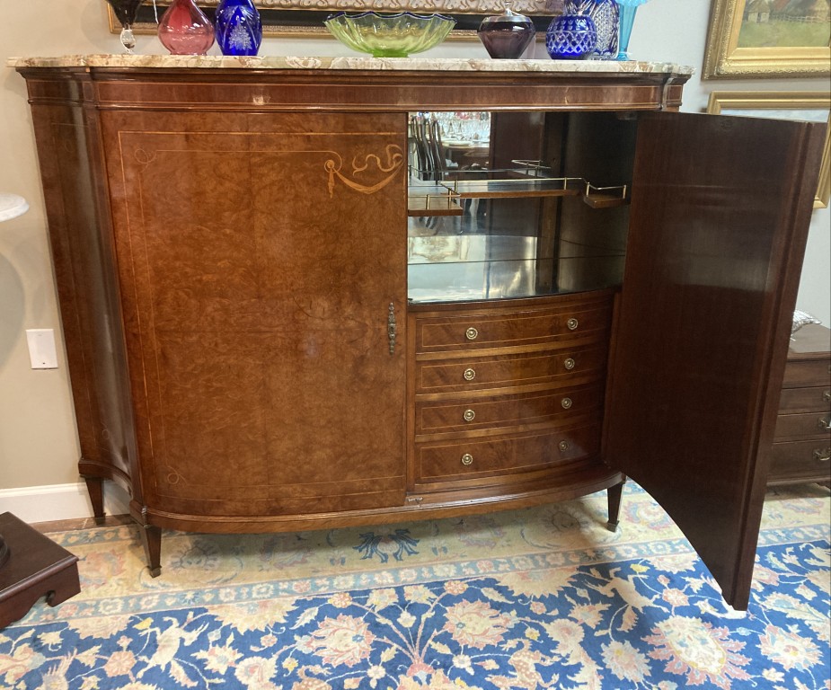 Tall Walnut Inlaid Marble Top Bar Cabinet