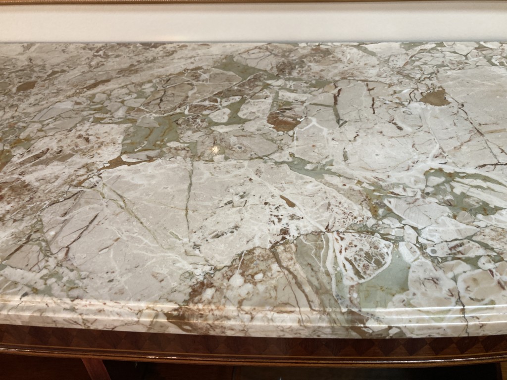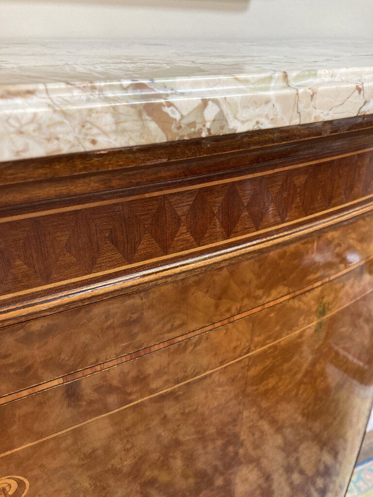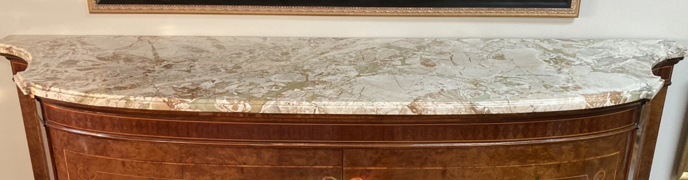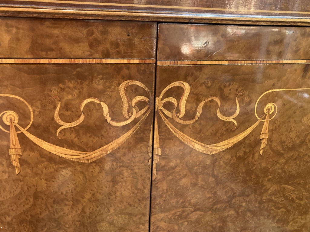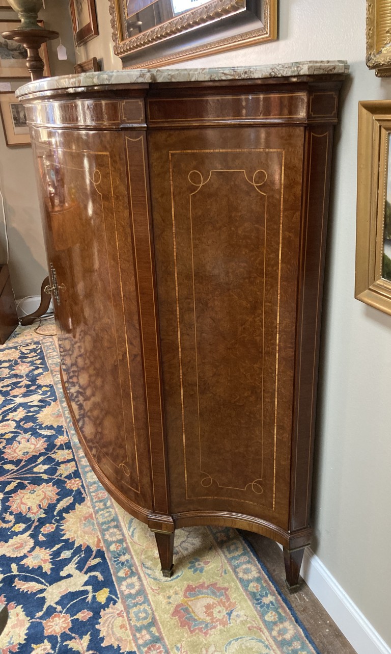 Tall Walnut Inlaid Marble Top Bar Cabinet