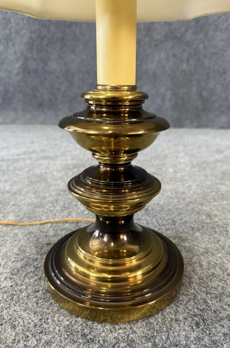 Your happiness with this item is of the utmost importance to us so please review the photographs carefully for condition. We endeavor to try and list any issues we may observe; we may not necessarily note all minor nicks and dings or we may simply miss something. Please inspect carefully to ensure your full happiness with this item. For this particular piece we found minor wear consistent with age and prior use, including small tears on the inside lining of the shade on both sides.