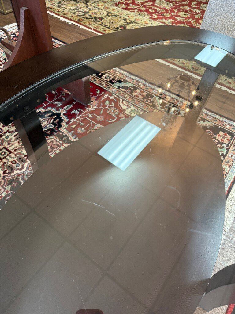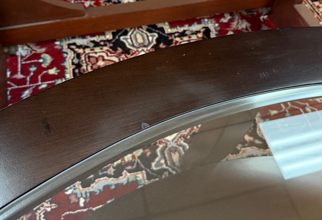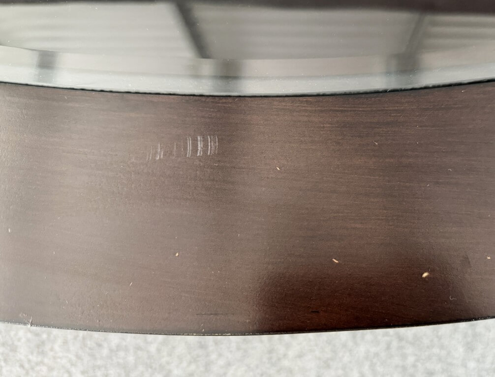 Your happiness with this item is of the utmost importance to us so please review the photographs carefully for condition. We endeavor to try and list any issues we may observe; we may not necessarily note all minor nicks and dings or we may simply miss something. Please inspect carefully to ensure your full happiness with this item. For this particular piece we found wear consistent with age and prior use, including scuffs on the wooden top, a few spots where furniture marker was used in its previous home, and some scratches on the glass.