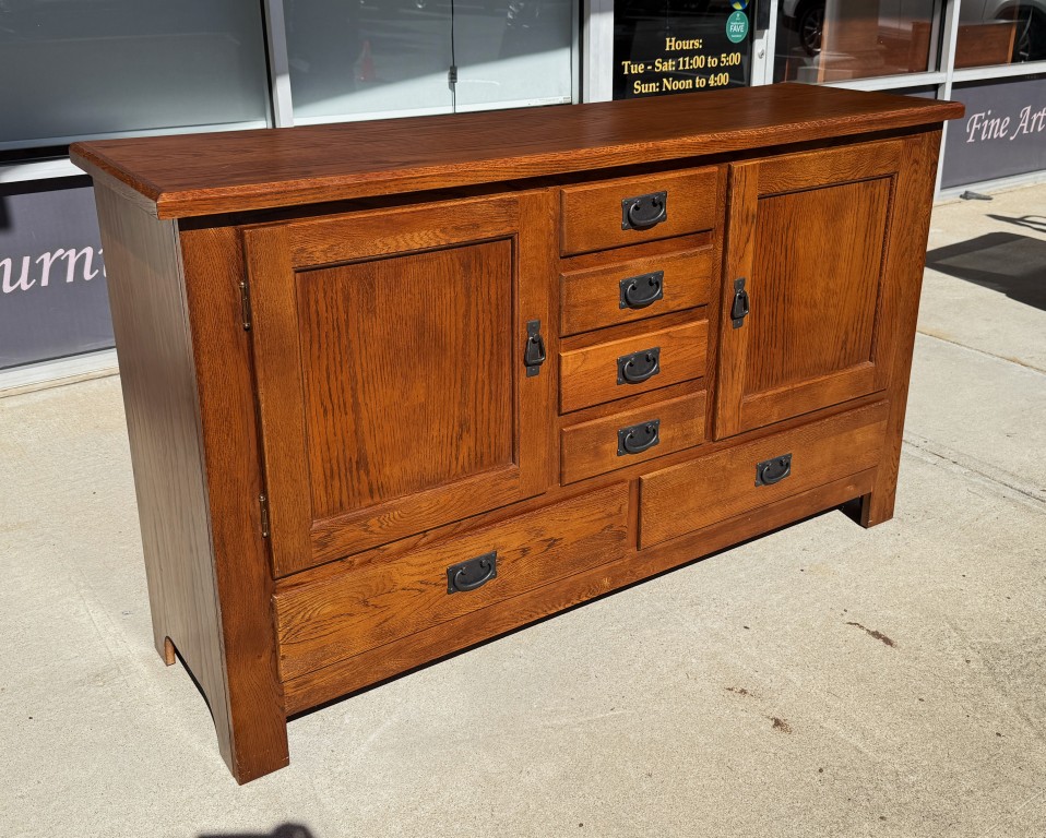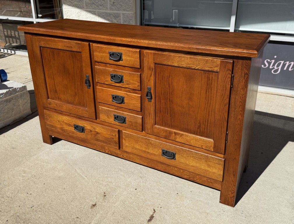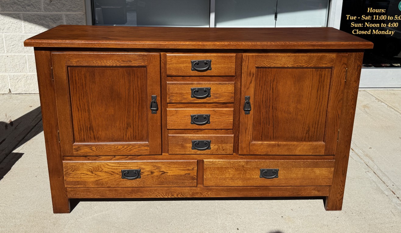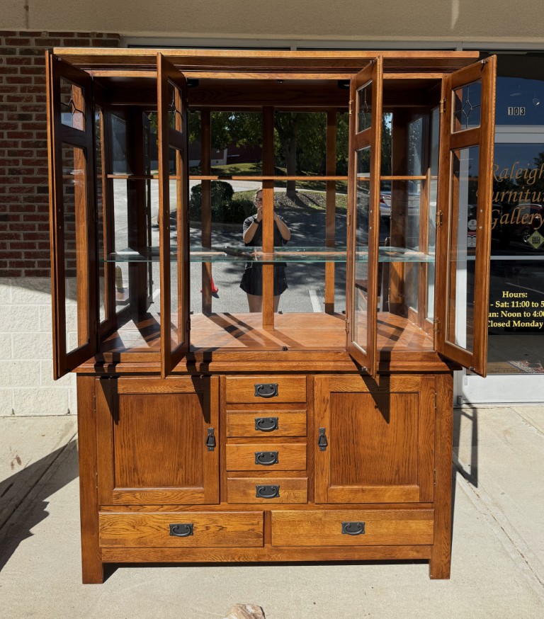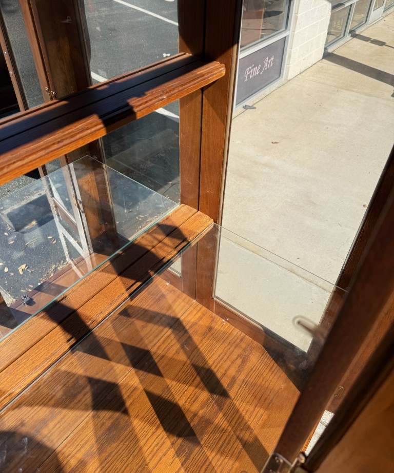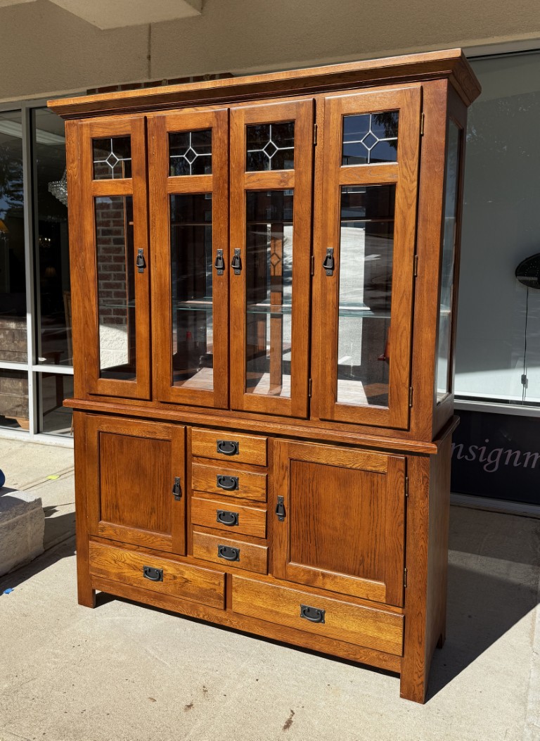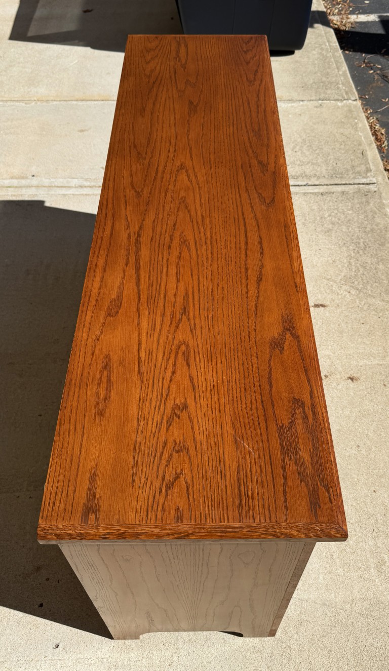 Your happiness with this item is of the utmost importance to us so please review the photographs carefully for condition. We endeavor to try and list any issues we may observe; we may not necessarily note all minor nicks and dings or we may simply miss something. Please inspect carefully to ensure your full happiness with this item. For this particular piece we found wear consistent with age and prior use, including the second glass shelf is missing and minor dings. The buffet top has some relatively minor scratches.