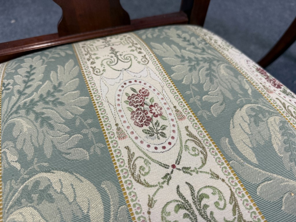 Your happiness with this item is of the utmost importance to us so please review the photographs carefully for condition. We endeavor to try and list any issues we may observe; we may not necessarily note all minor nicks and dings or we may simply miss something. Please inspect carefully to ensure your full happiness with this item. For this particular piece we found minor wear consistent with age, including some slight sun-fading on the back of a few chairs and some scratches on the wooden frames of the chairs.