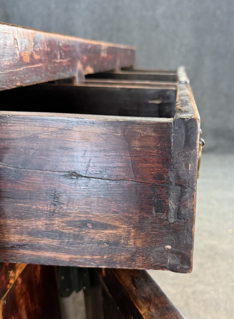 Your happiness with this item is of the utmost importance to us so please review the photographs carefully for condition. We endeavor to try and list any issues we may observe; we may not necessarily note all minor nicks and dings or we may simply miss something. Please inspect carefully to ensure your full happiness with this item. For this particular piece we found wear consistent with age and prior use, including water damage to top. We believe the wide space between doors and overall distressed finish were intentional design choices.
