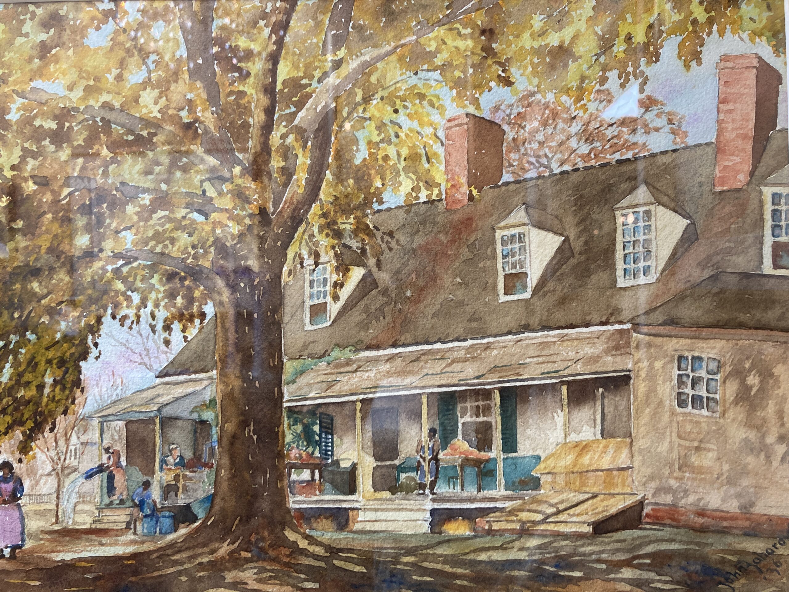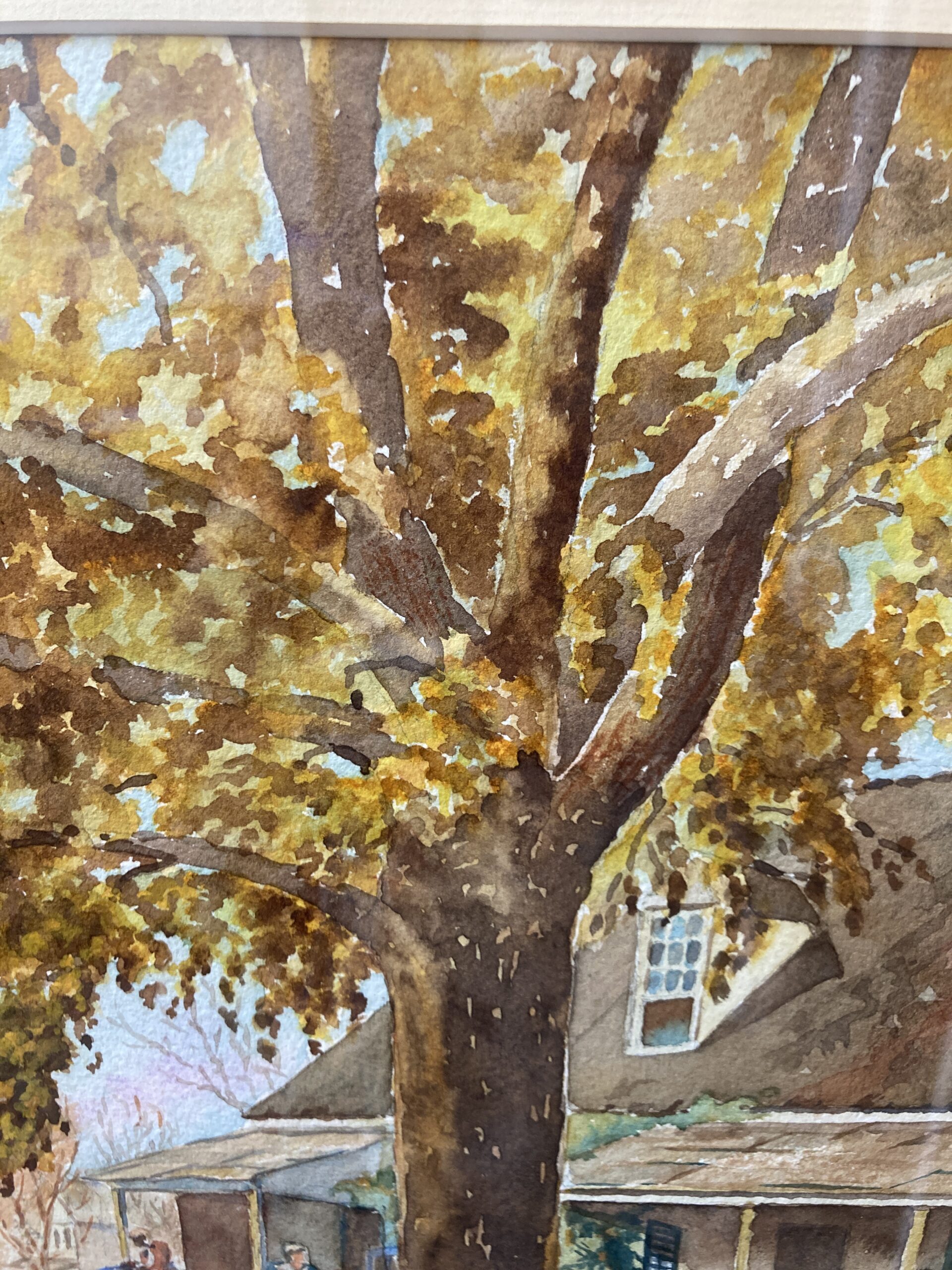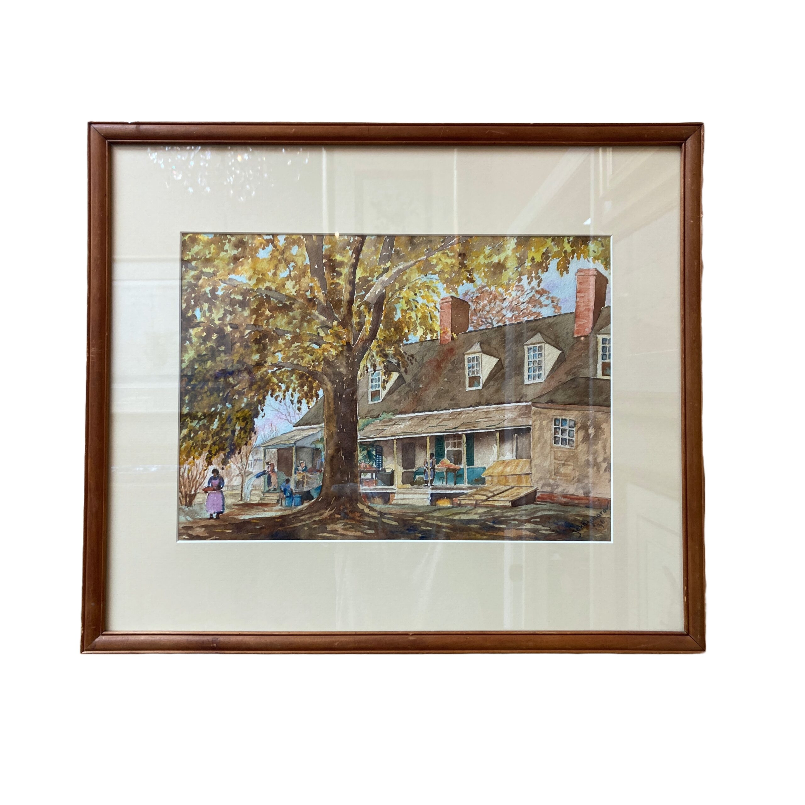 Vintage Signed and Dated Original Watercolor of Farmstead in Fall