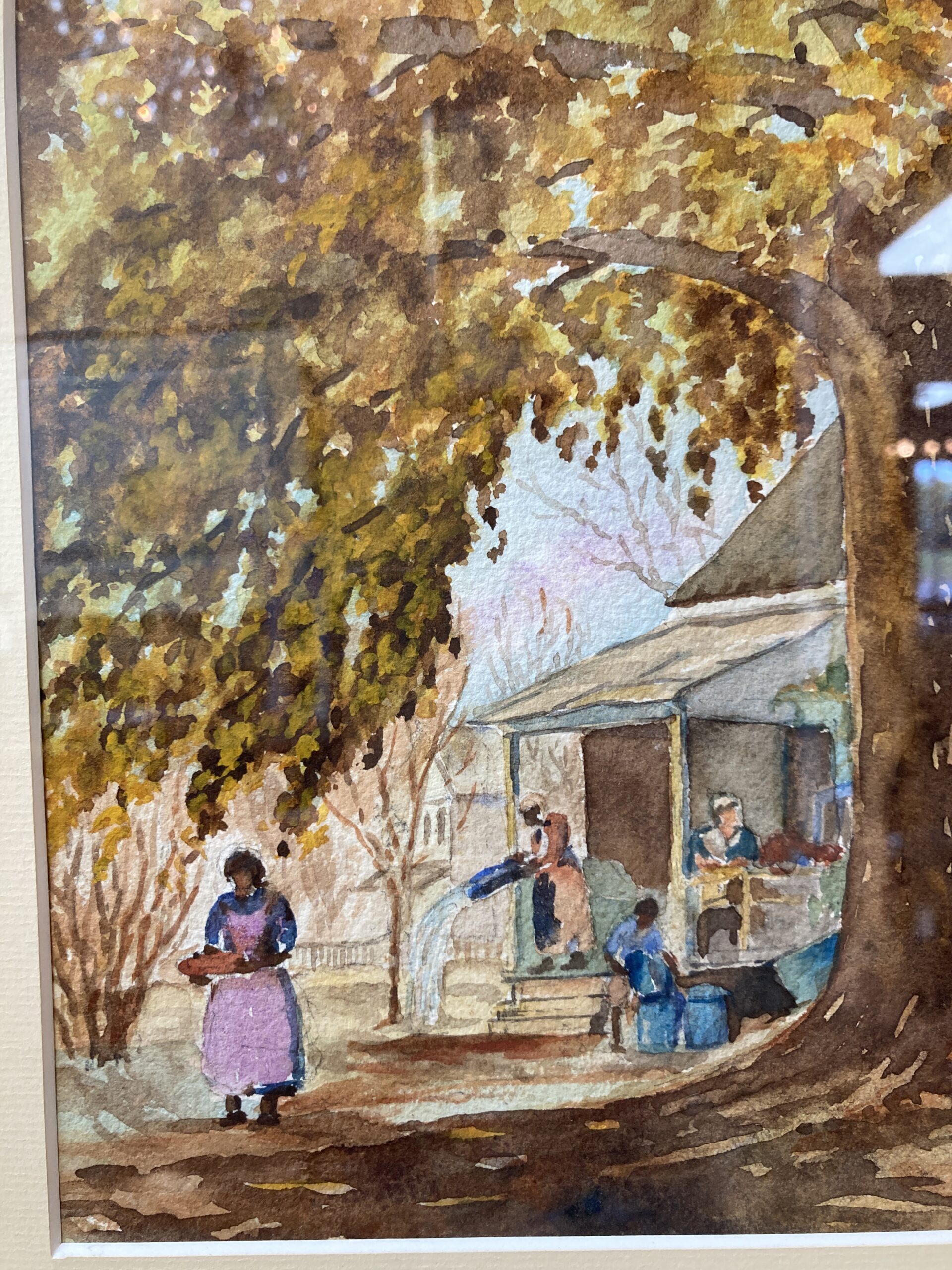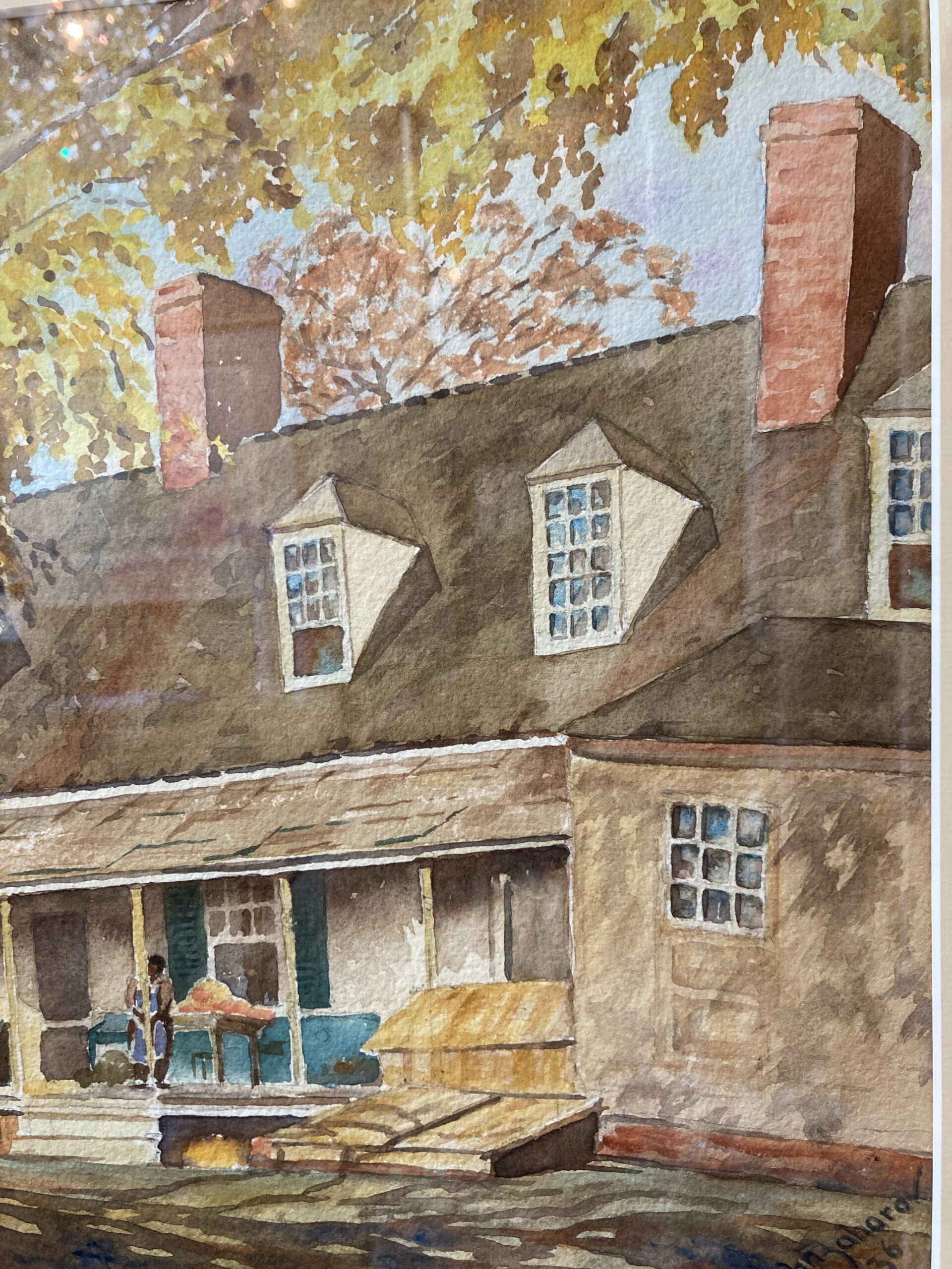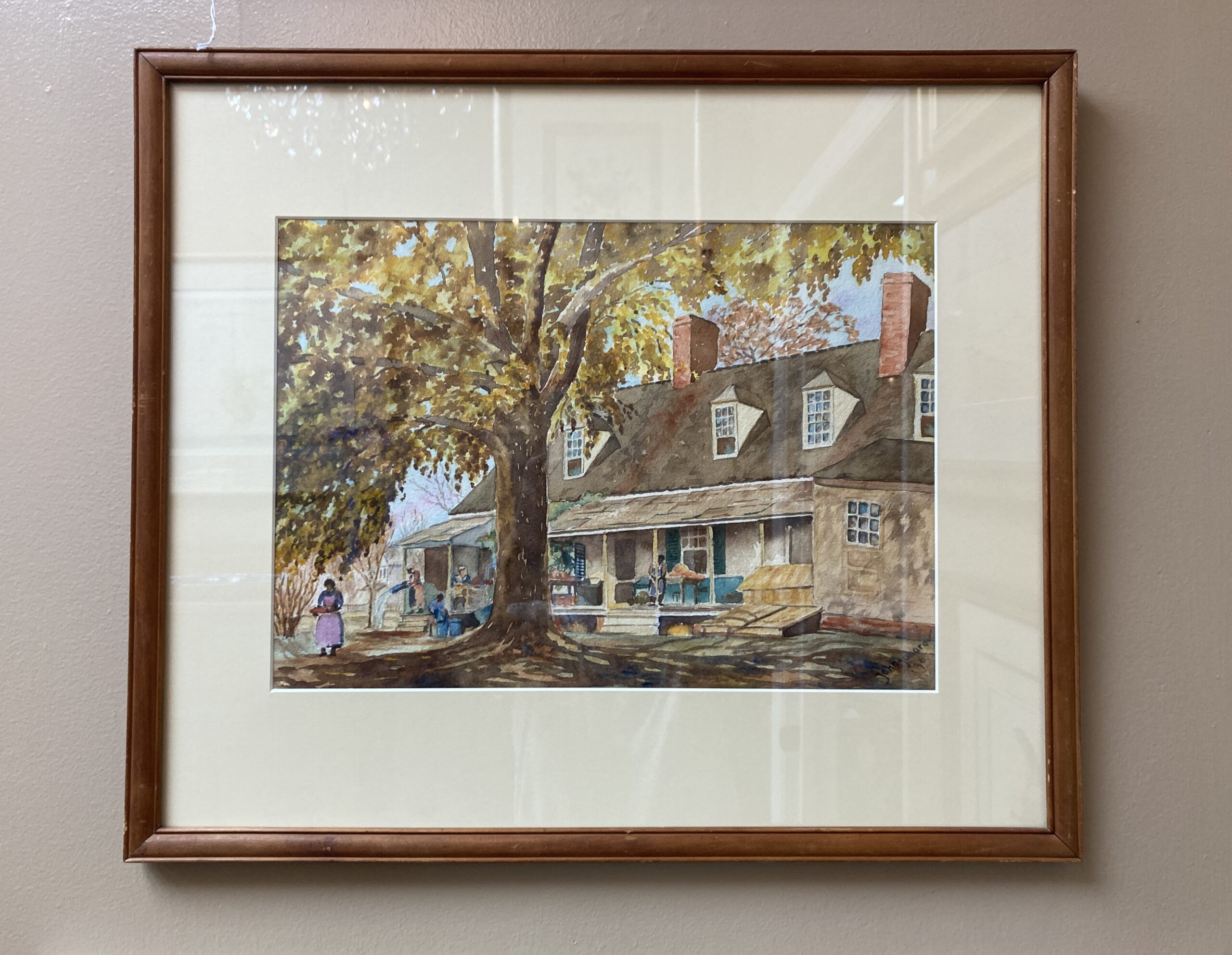 Vintage Signed and Dated Original Watercolor of Farmstead in Fall