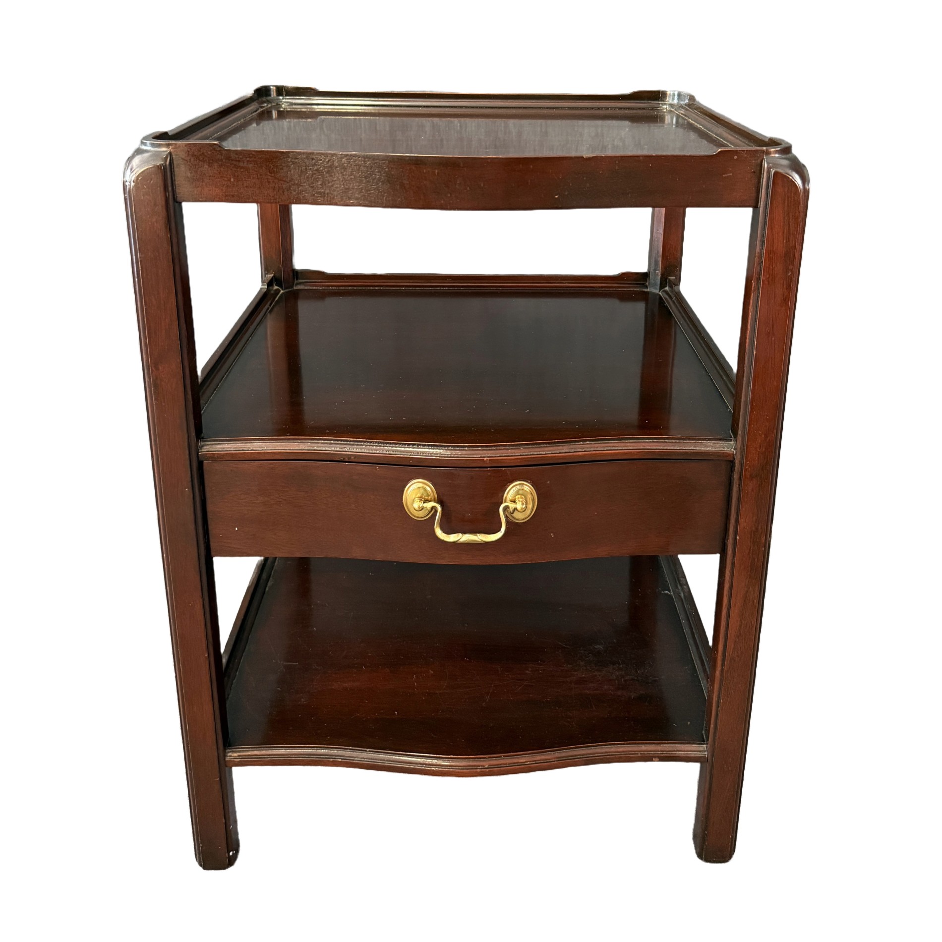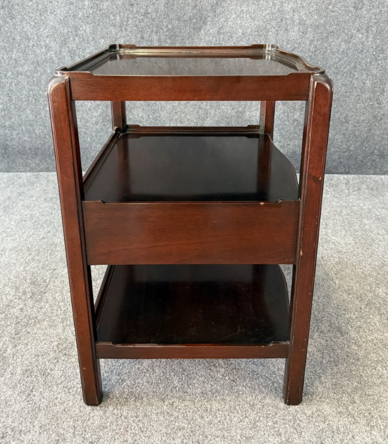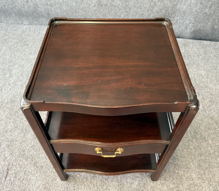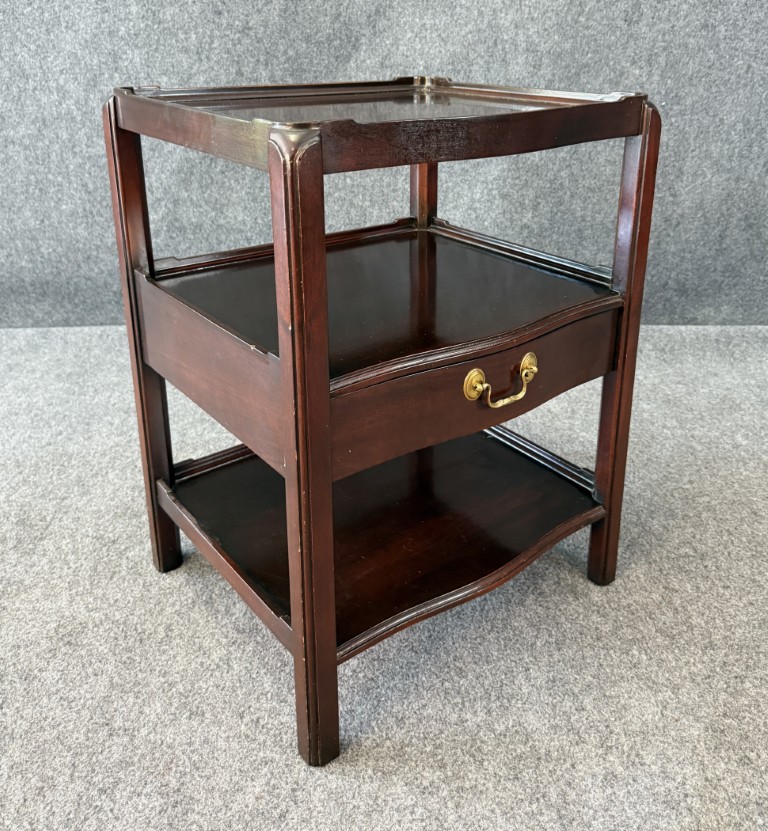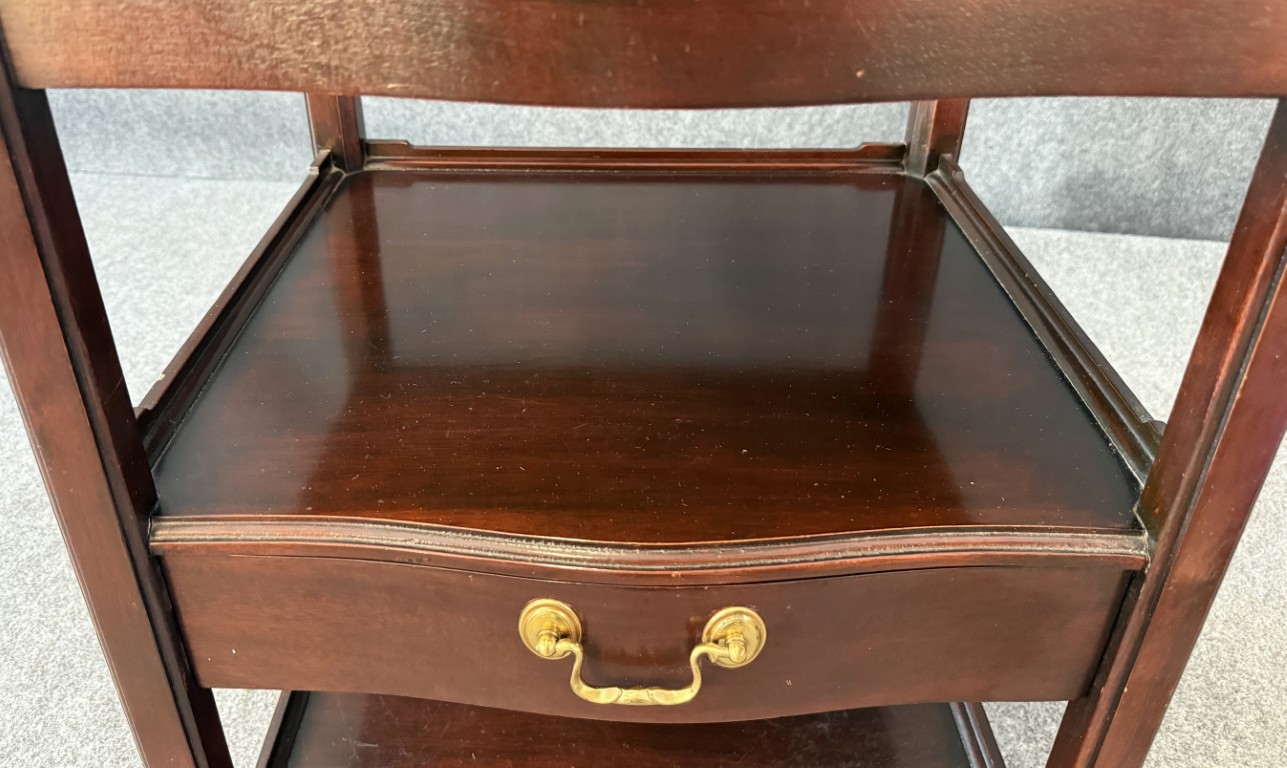 Your happiness with this item is of the utmost importance to us so please review the photographs carefully for condition. We endeavor to try and list any issues we may observe; we may not necessarily note all minor nicks and dings or we may simply miss something. Please inspect carefully to ensure your full happiness with this item. For this particular piece we found minor wear consistent with age and prior used including general nicks and dings, slight wear on top and tiers, and texture in molding above drawer.